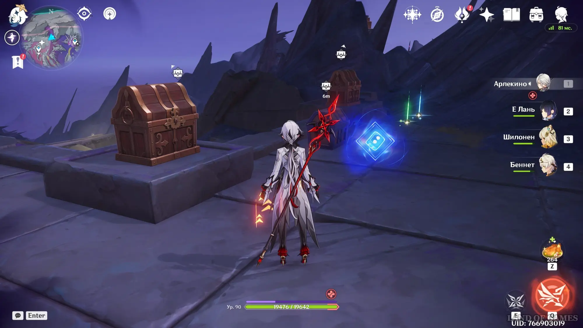 Переместитесь к западному телепорту на скале Кипумаки, а затем поверните направо и начните двигаться в сторону огромного фиолетового шара впереди. Не доходя до него, сверните влево и поднимитесь немного наверх. Здесь вы обнаружите заблокированный драгоценный сундук в окружении автоматонов.