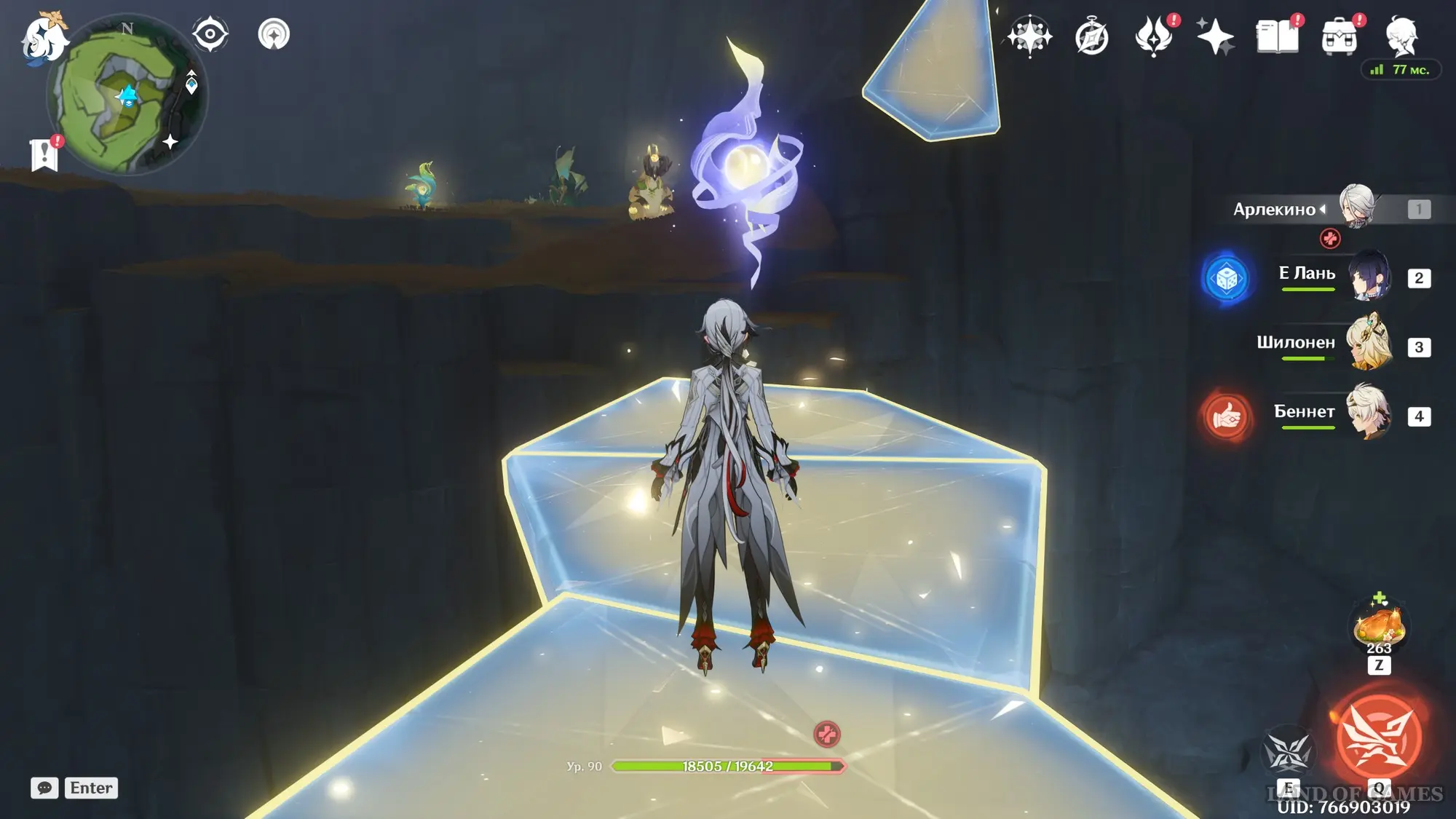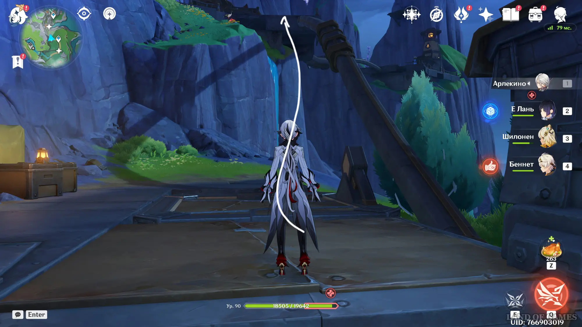 Итак, поверните камеру вправо и схватите мудроцвет (клавиша «Т»), а затем пройдите от него налево, следя за выстраиванием парящих плит в некое подобие моста. Встаньте возле сундучка и бросьте ядро (клавиша «Q»), чтобы зафиксировать положение конструкции.