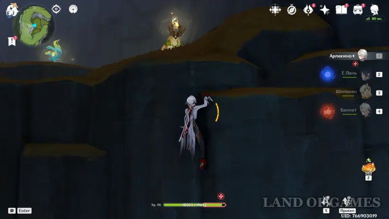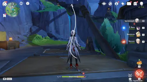 Теперь пройдите по данному наполовину построенному мосту, схватив по пути лунокул, и спрыгните в сторону овечки. Схватитесь за скалу и заберитесь наверх. У вас должно хватить выносливости на то, чтобы сделать это.