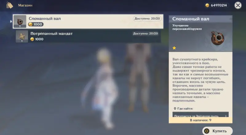 Ассортимент здесь шире и разнообразнее. Большинство ресурсов продается по стандартной схеме, десять единиц за 1 000 моры, однако есть одно исключение: