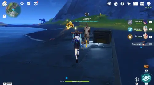 Первую остановку Кузьмича можно обнаружить на Причале у Моря Пустоты. После перемещения к телепорту выйдите на противоположную сторону причала, именно там стоит торговец, которого легко узнать по массивному рюкзаку за спиной и восклицательному знаку над головой.