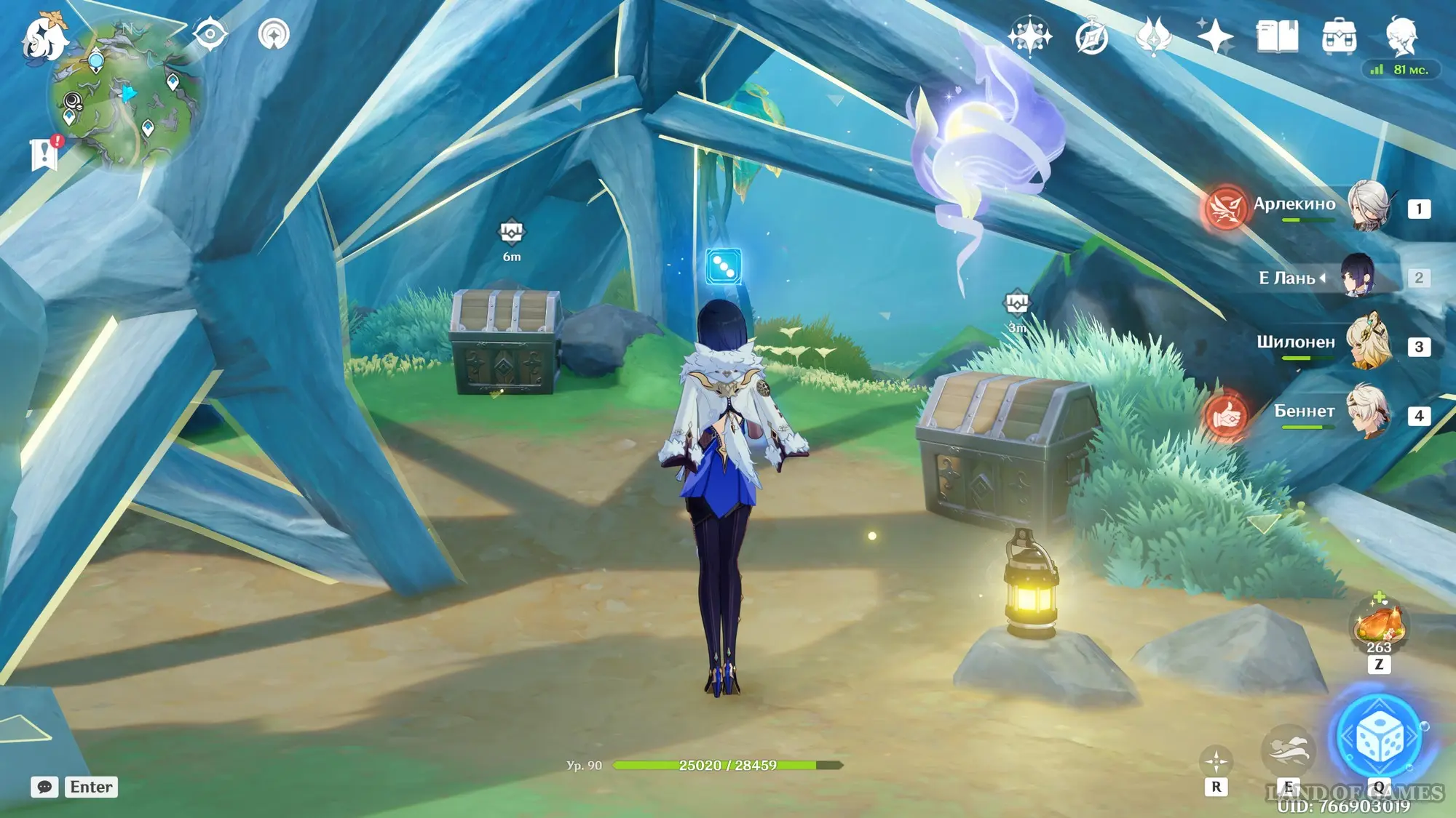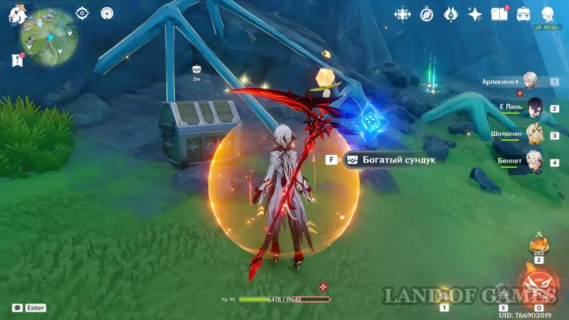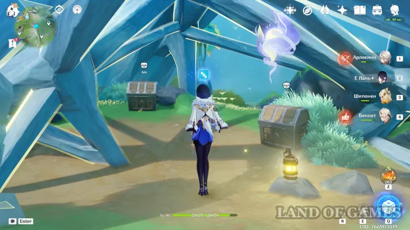 За кристаллом вы обнаружите хиличурла-изгоя. Победите противника для получения богатого сундука.