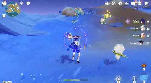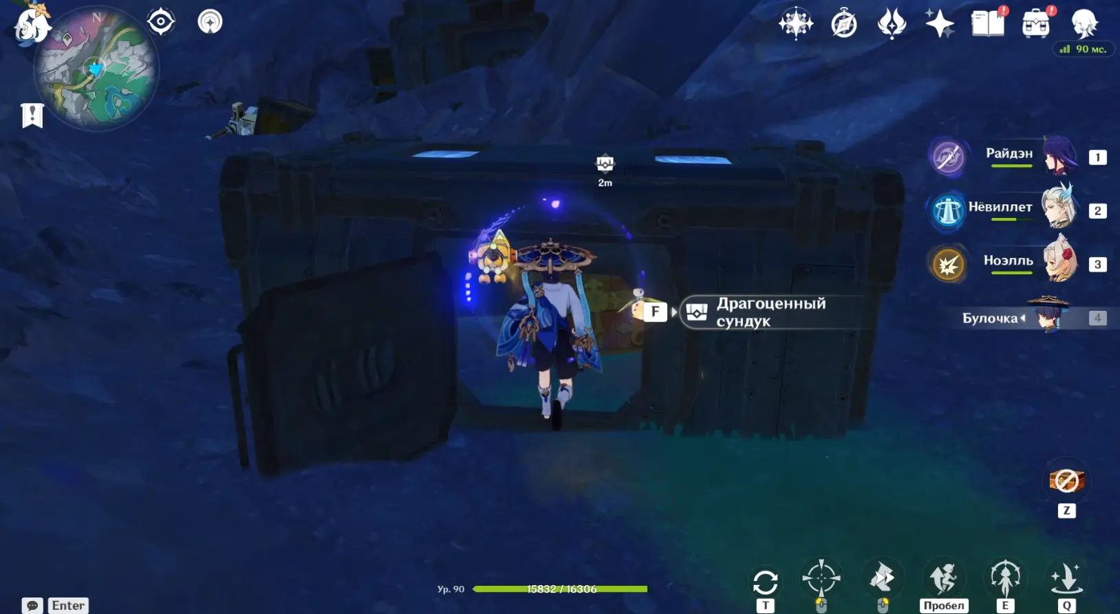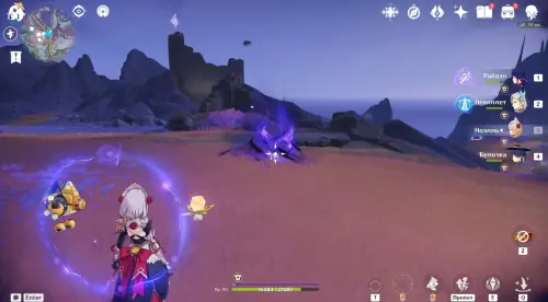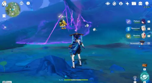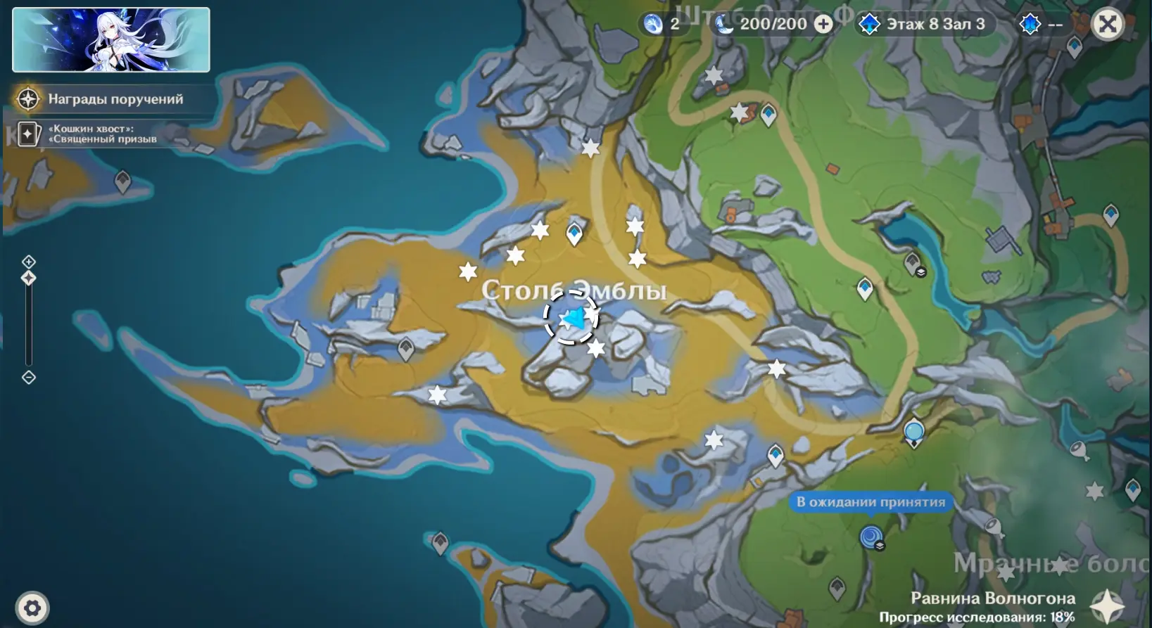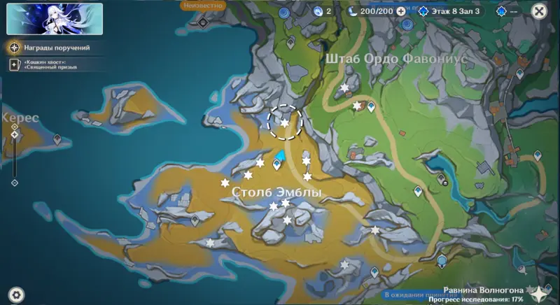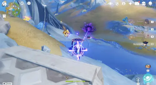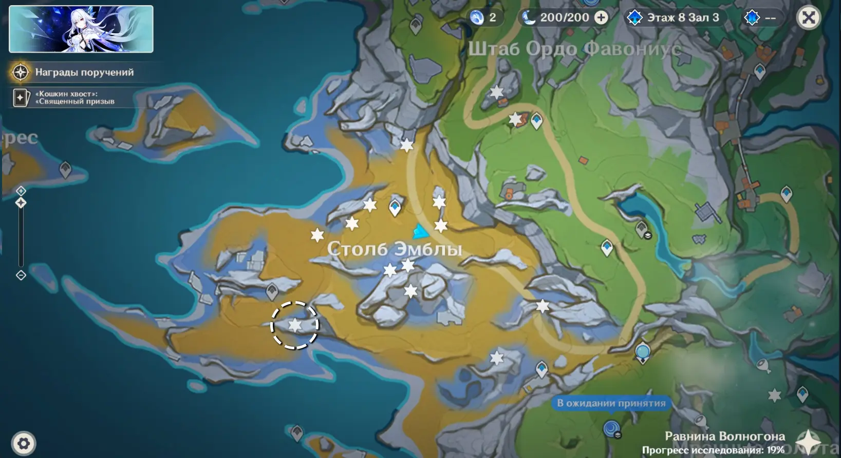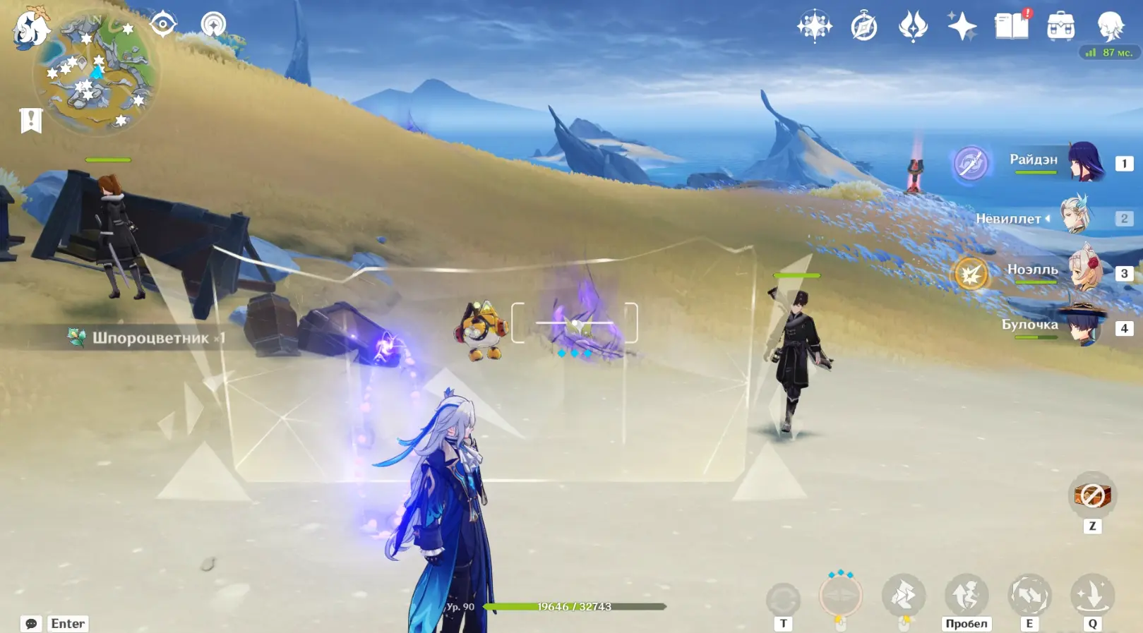 Ниже того же телепорта ратники сражаются с рыболовами скрытых глубин. Подберите шпилецвет и уничтожьте линии разлома над врагами. После победы станет доступен богатый сундук.