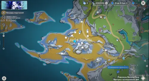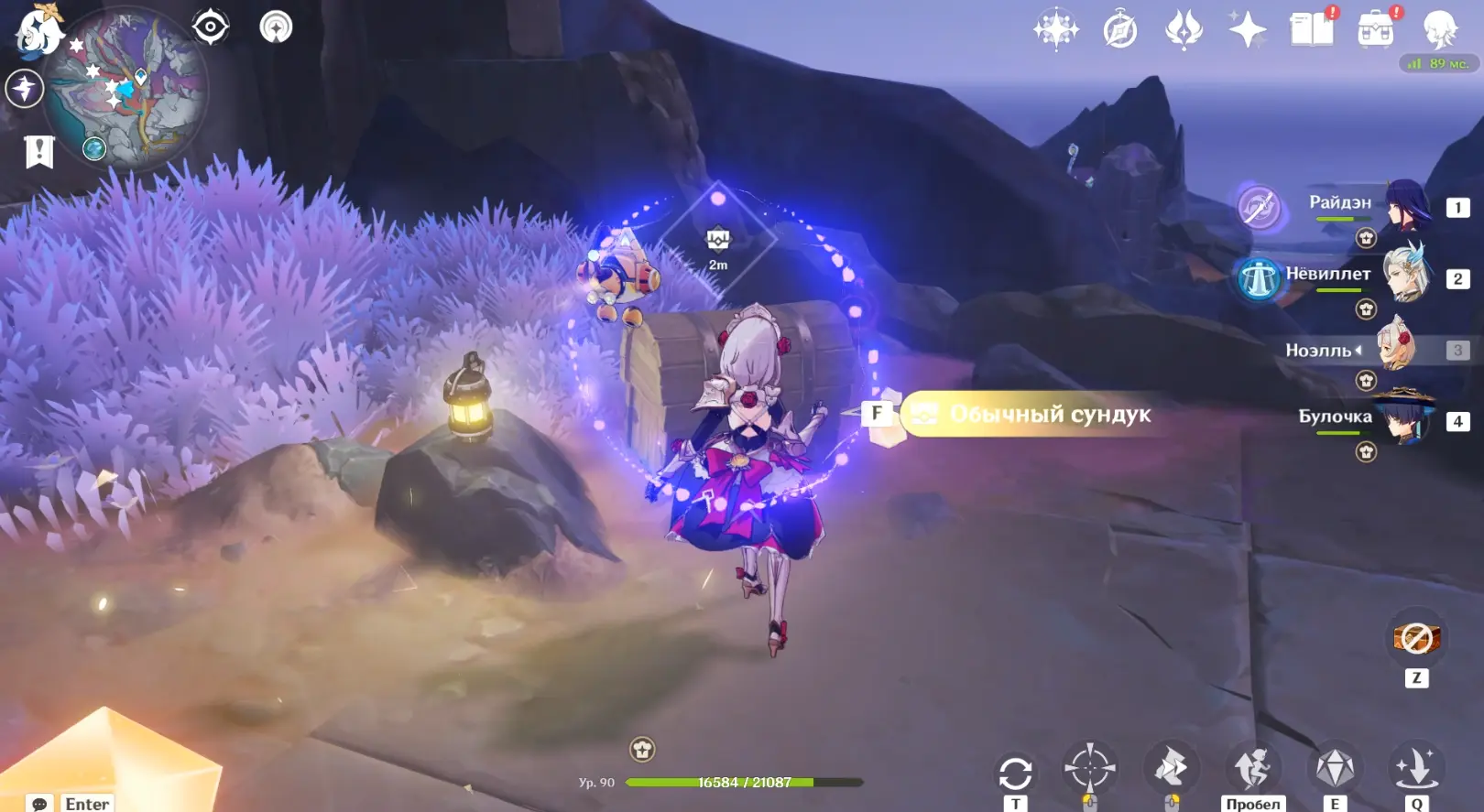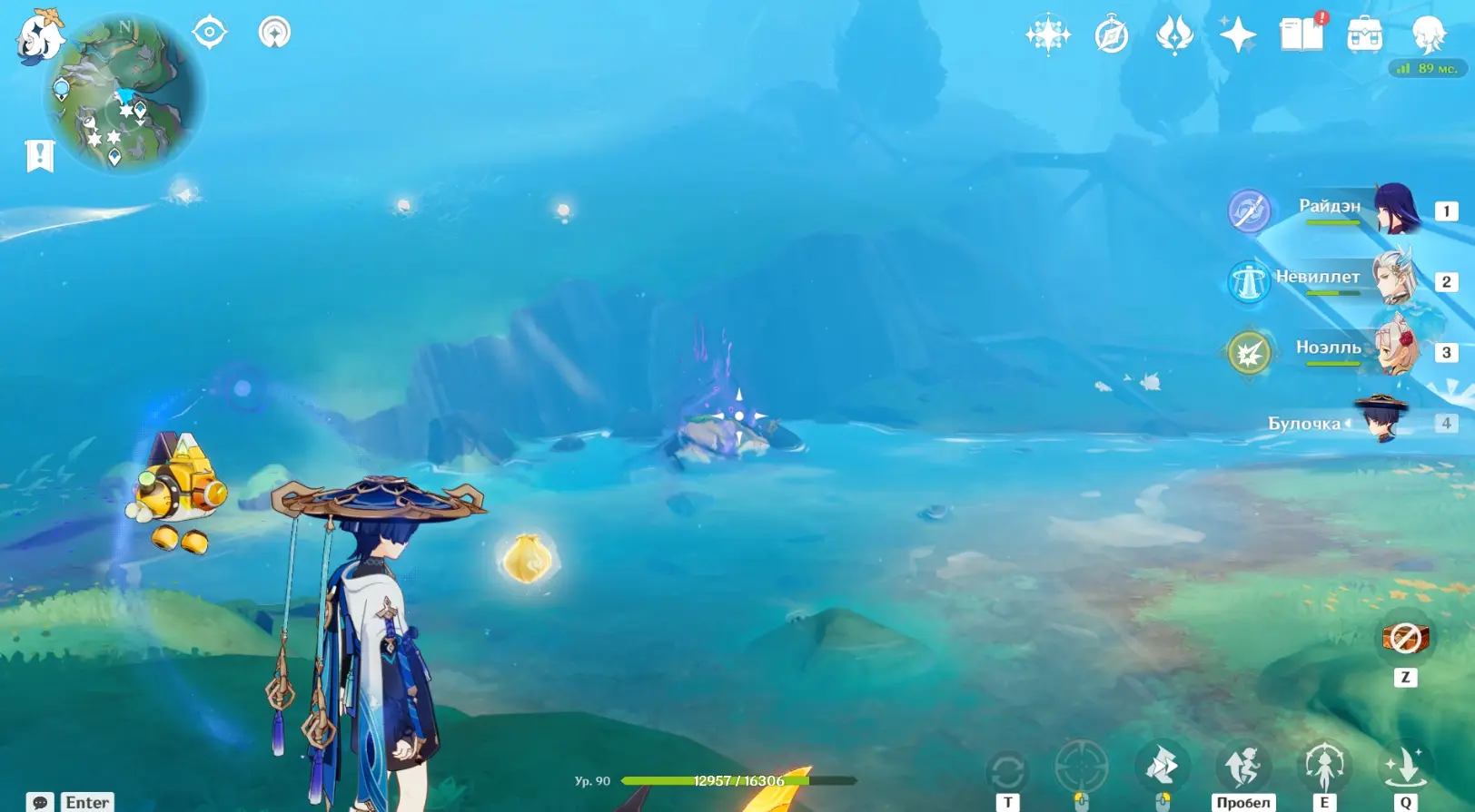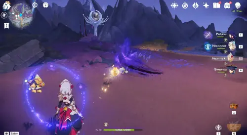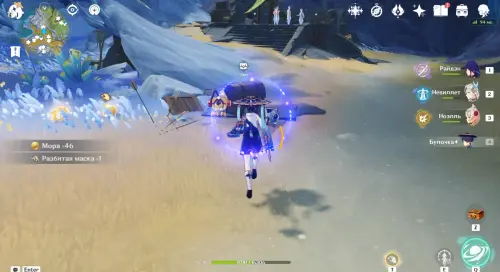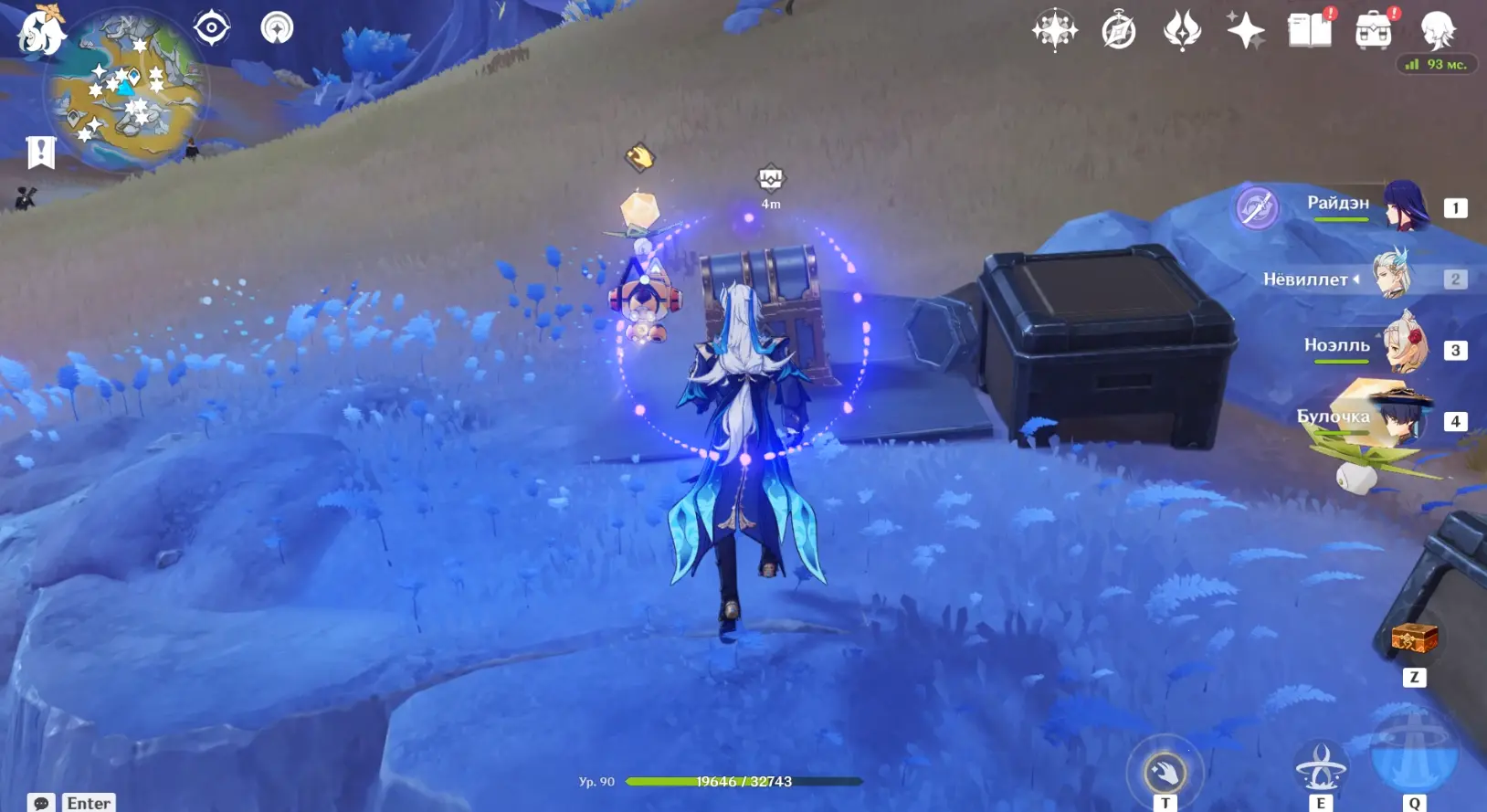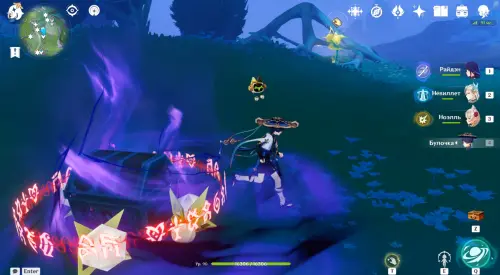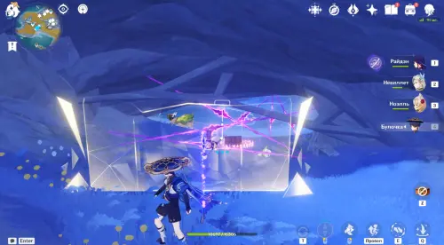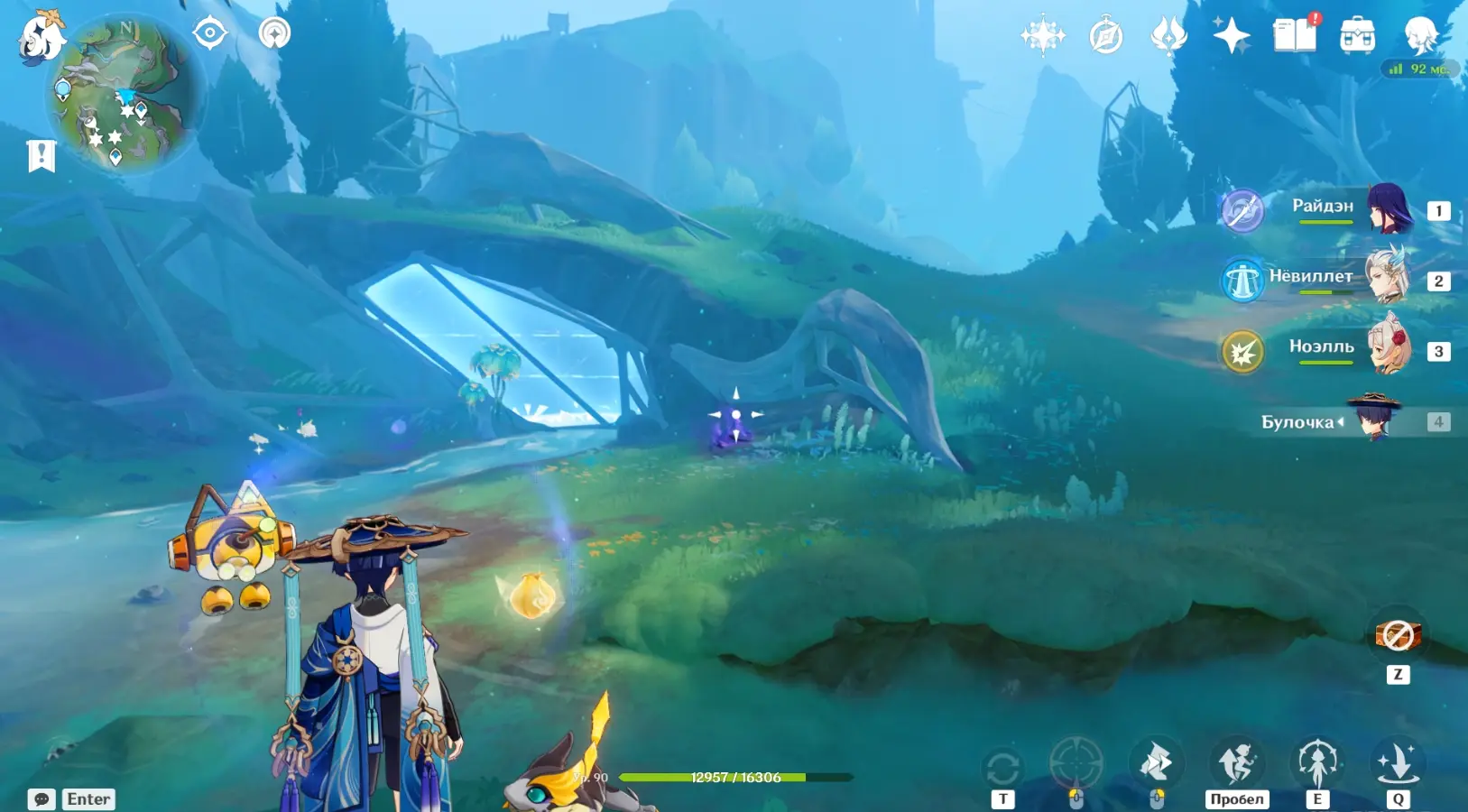 Ниже того же телепорта ратники сражаются с рыболовами скрытых глубин. Подберите шпилецвет и уничтожьте линии разлома над врагами. После победы станет доступен богатый сундук.