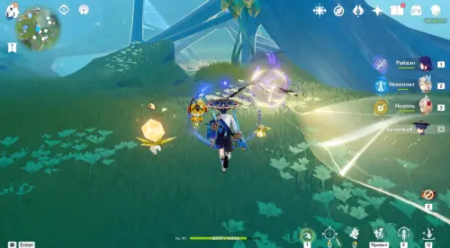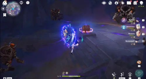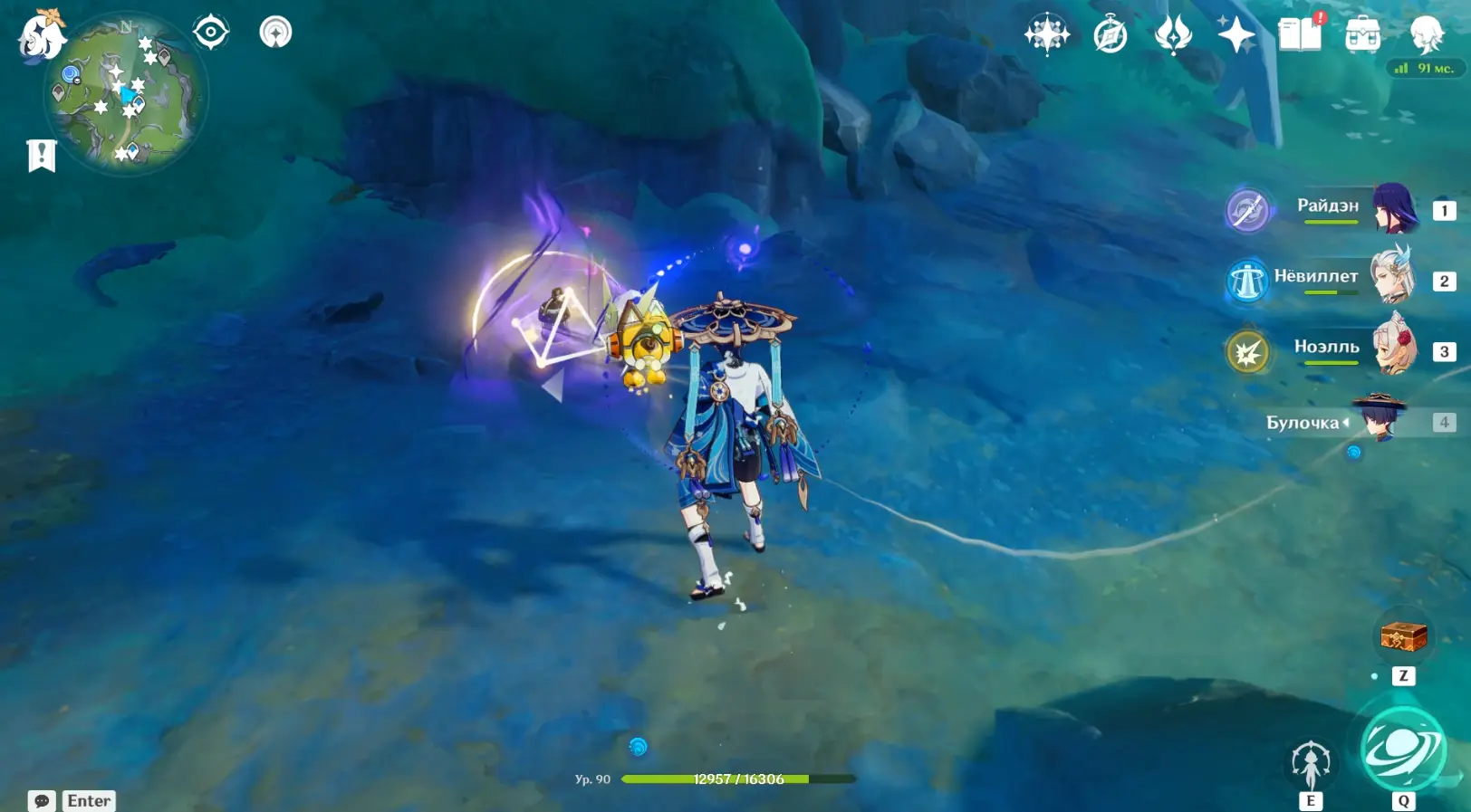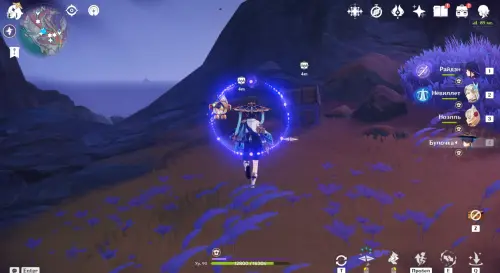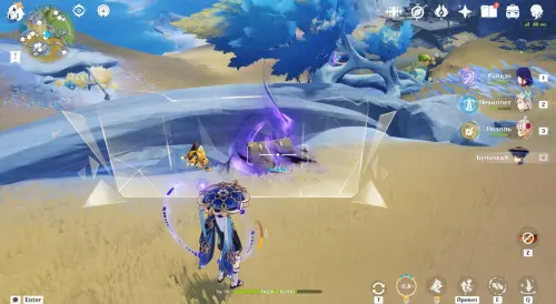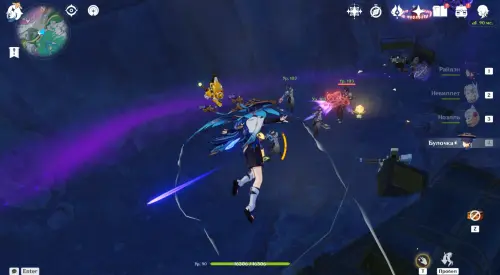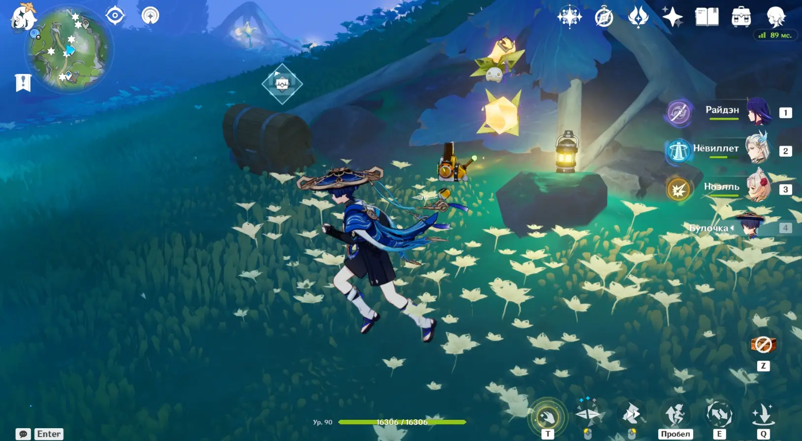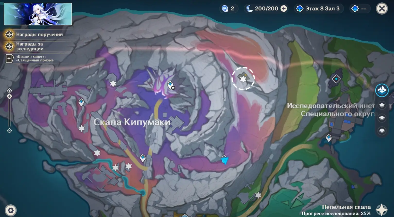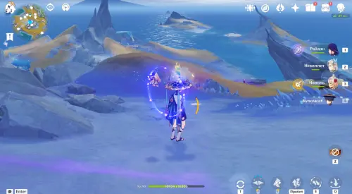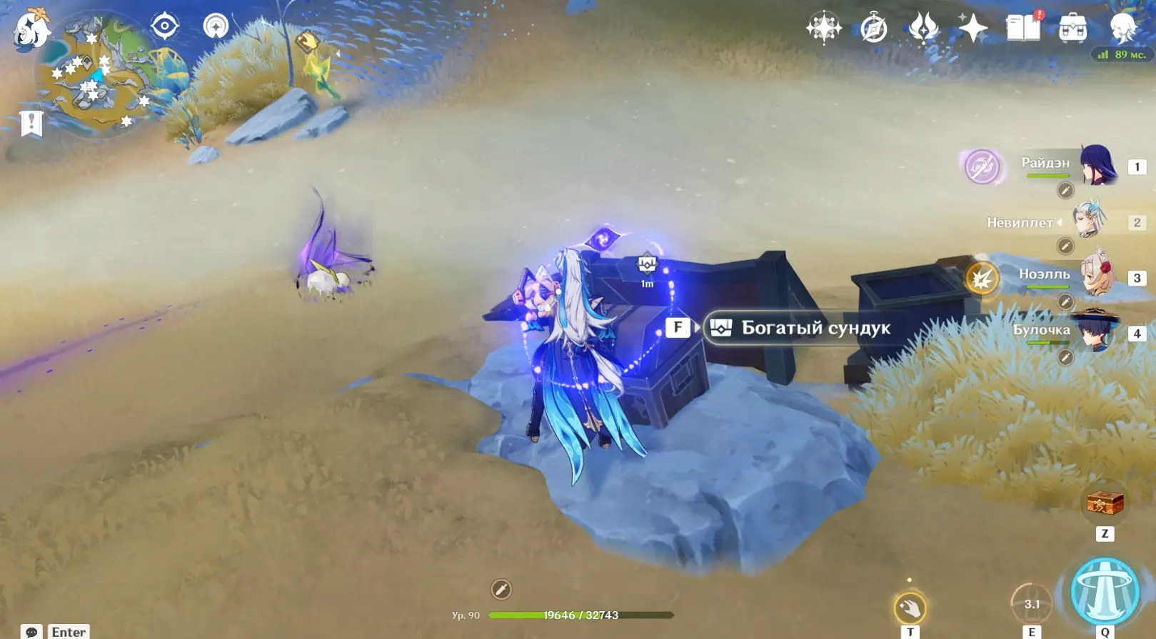 Ниже того же телепорта ратники сражаются с рыболовами скрытых глубин. Подберите шпилецвет и уничтожьте линии разлома над врагами. После победы станет доступен богатый сундук.