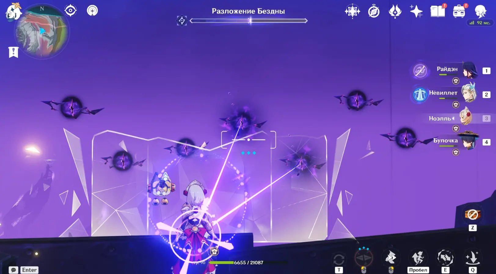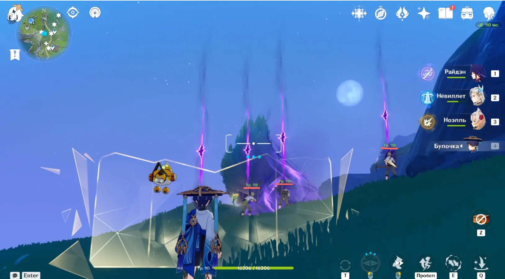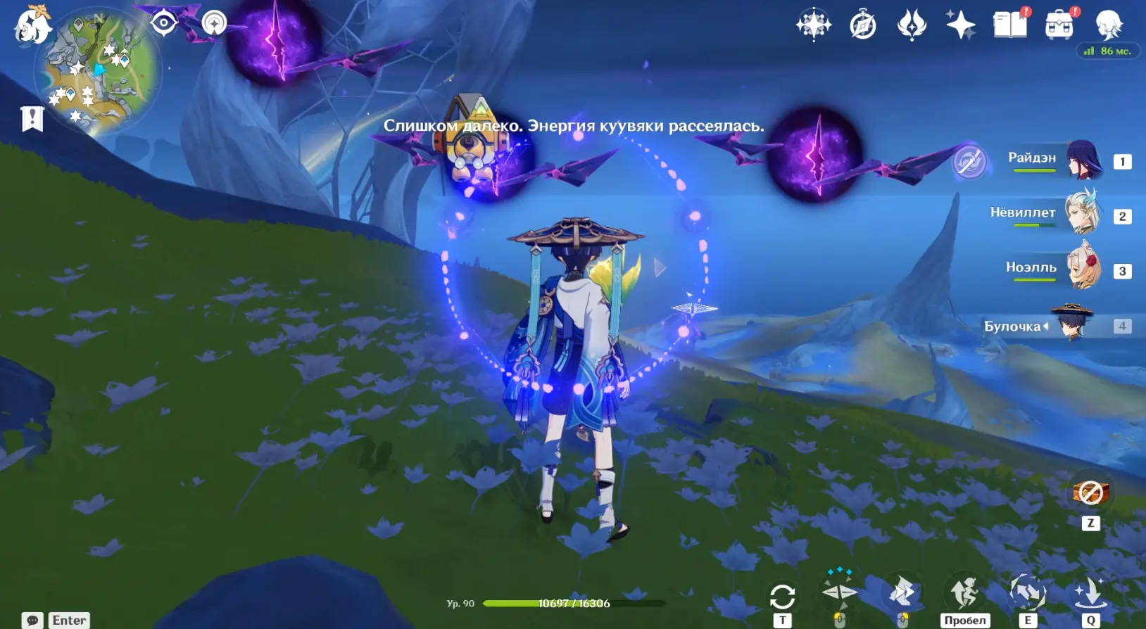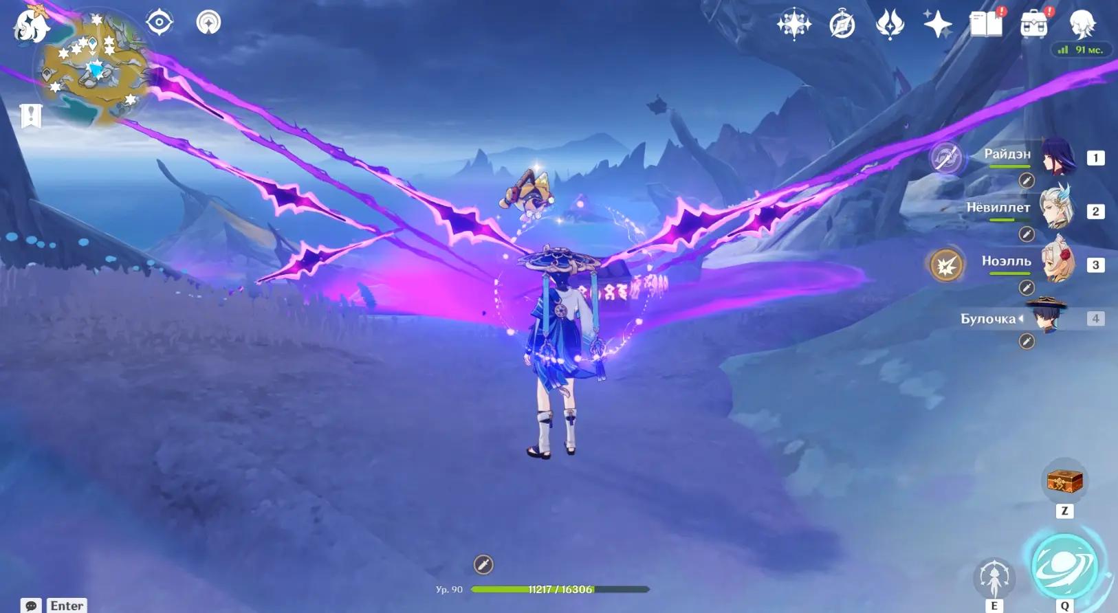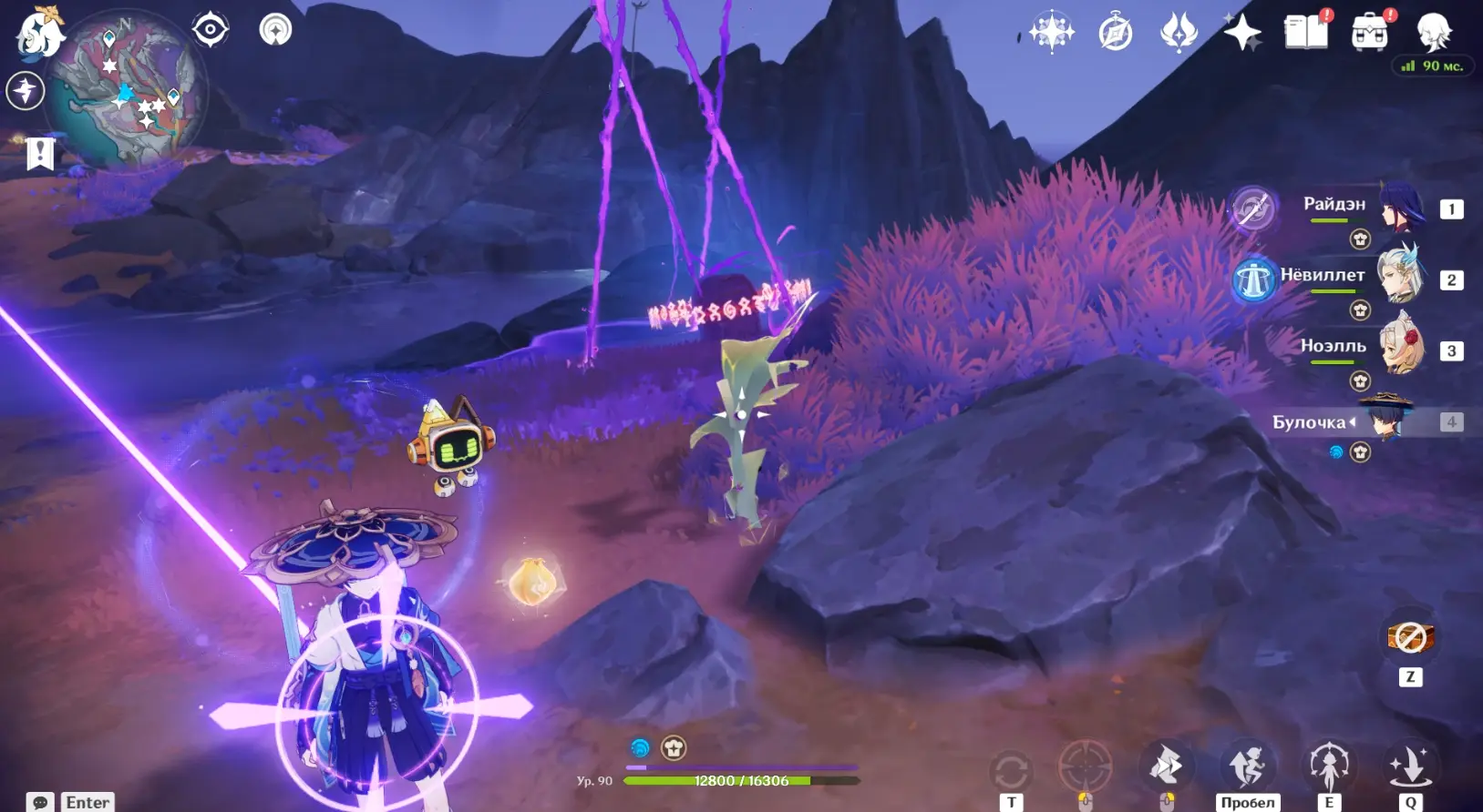 Возьмите шпилецвет снова и удерживайте ЛКМ, отпуская в момент, когда атака Ока ударит по щиту. Отраженные удары уничтожат сущности. В награду получаем богатый сундук.