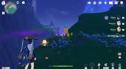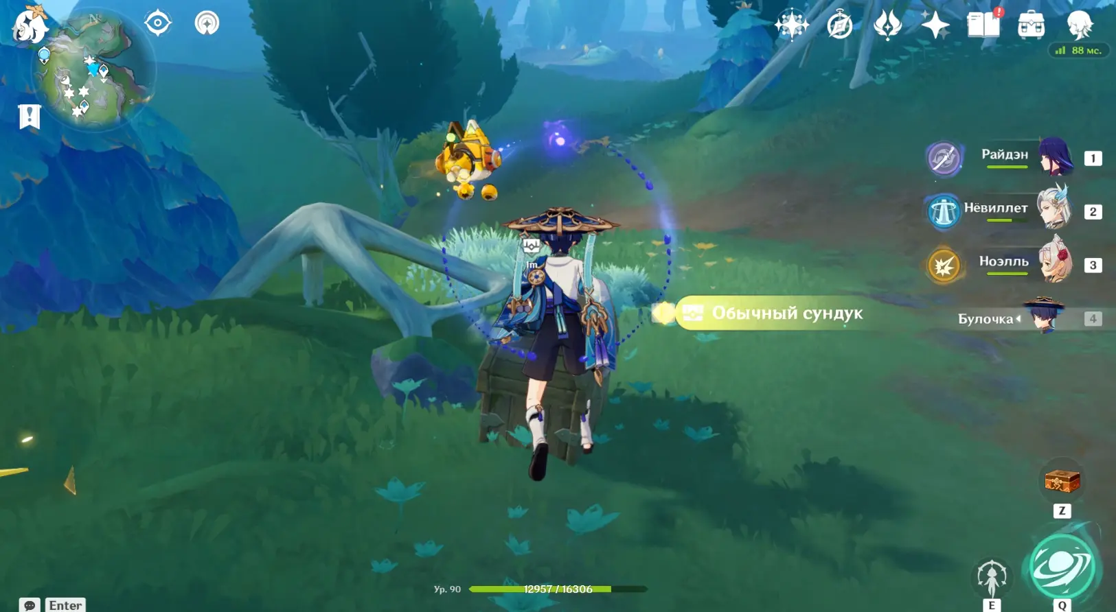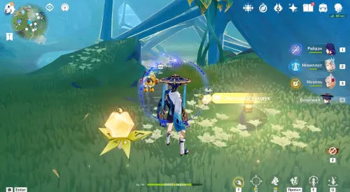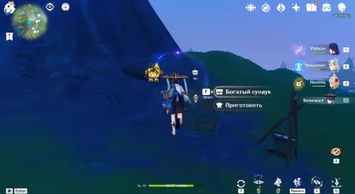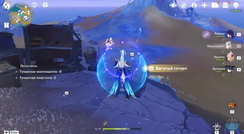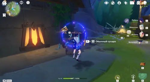 Недалеко от телепорта хиличурлы сторожат обычный сундук. Расстреляйте их шпилецветом, затем добейте и заберите награду.