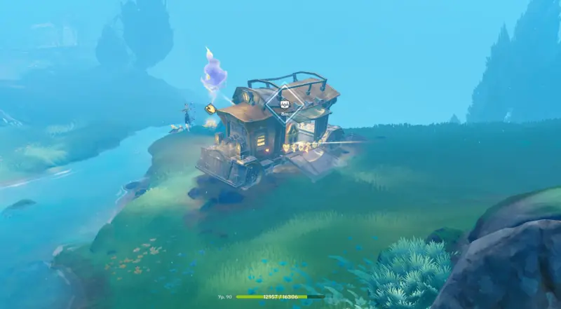 Рядом находится драгоценный сундук под барьером. У воды вы найдете два зараженных объекта: ленивую овечку и сверкоцвет. Сначала очистите сверкоцвет, затем используйте его плод на овечке. Барьер с сундука спадет, а рядом появится призма. Подробнее об этом мы рассказали в отдельном материале.