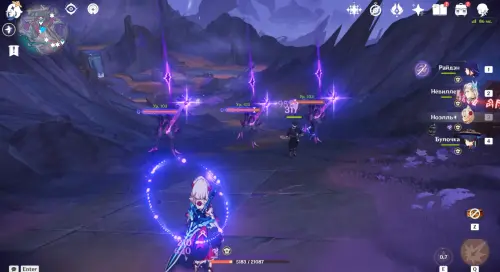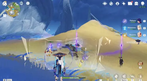 На месте находятся охотники за сокровищами, наблюдающие за линиями разлома. Используйте шпилецвет, чтобы одновременно ударить по линиям над противниками. После боя у барьера появятся два Ока погибели.