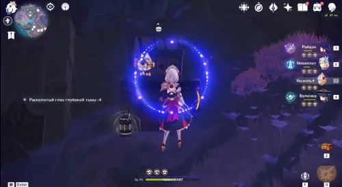 Берем мандрагору неподалеку от обычного сундука и отправляем ее в него. Появится надпись, которая подскажет нам, что нужно следовать по следам Бездны. Отправляемся за сине-фиолетовым следом и попадаем в ловушку, где нас уже поджидают 3 ока погибели. Вооружаемся шпилецветом и отражаем их атаки. После этого можем вернуться обратно к сундукам, которые будут разблокированы.