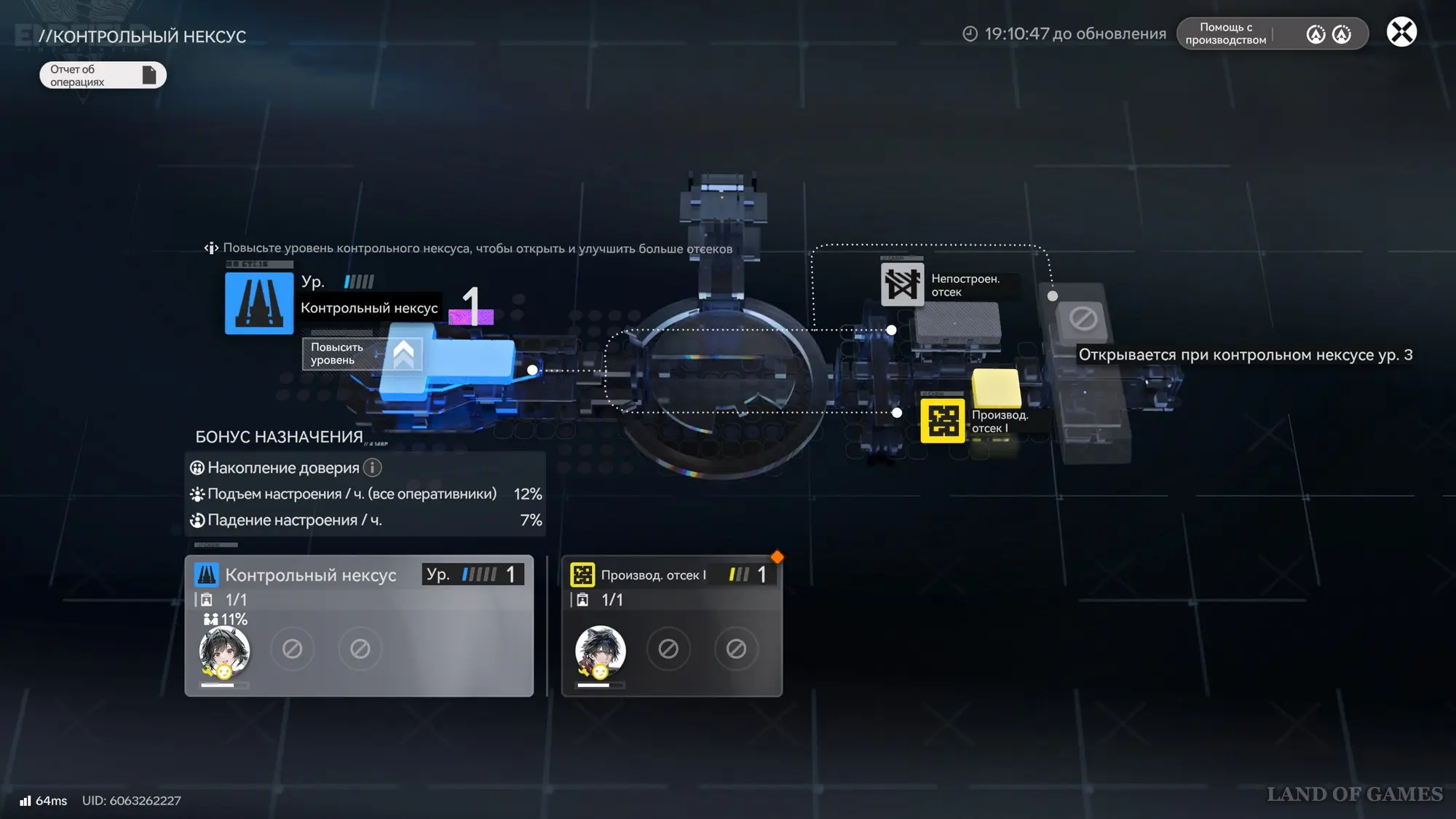В результате выбранный оперативник будет находиться на мостике и работать, и у него начнет потихоньку расти уровень доверия. При этом со временем у персонажа будет снижаться настроение из-за работы, поэтому вечно держать его на контрольном нексусе не удастся – придется иногда возвращать его в Центральное кольцо для отдыха.