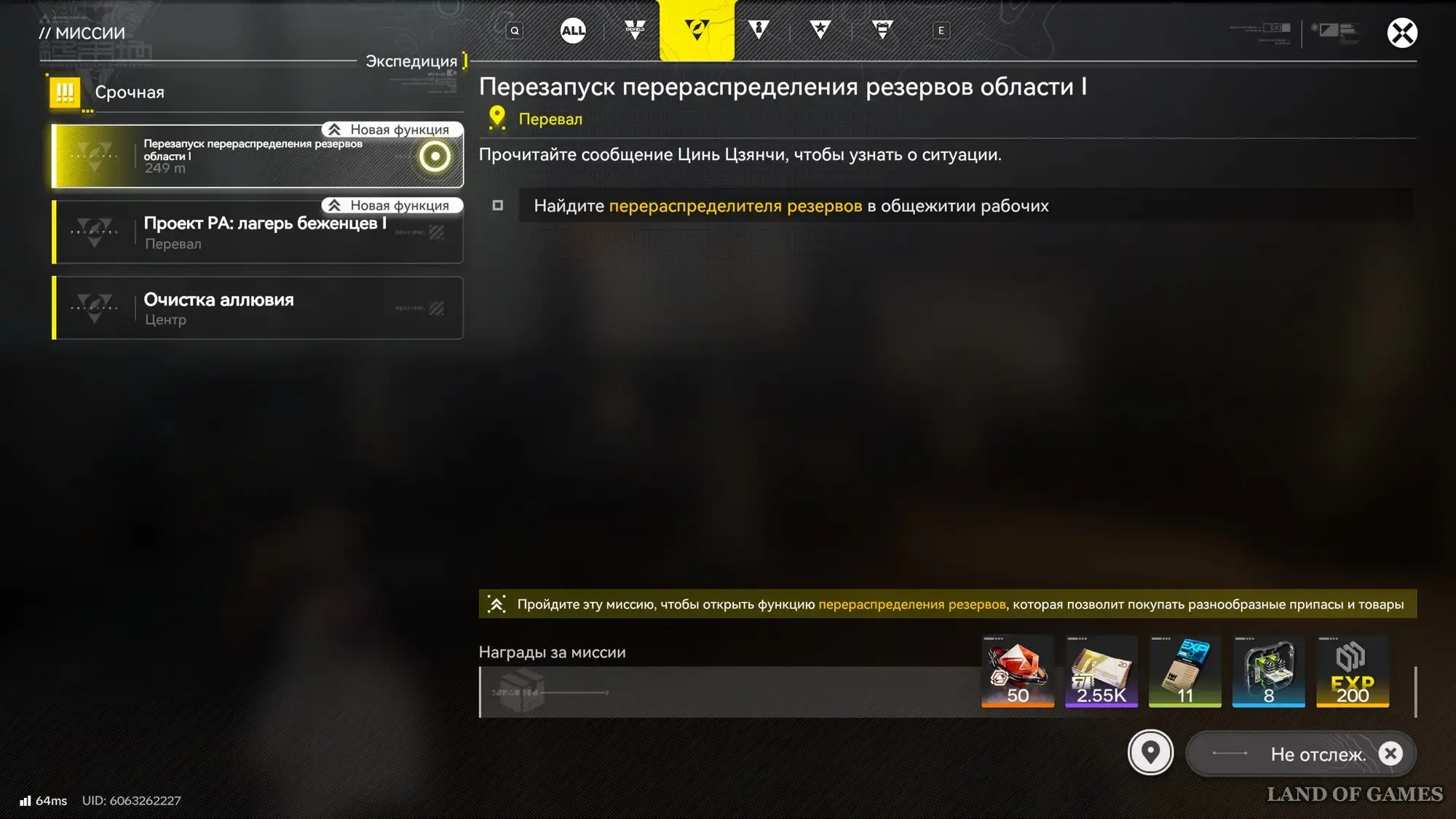 Вы сможете разблокировать эту механику в рамках прохождения основной миссии «Подготовка» из квестовой цепочки «Мутное небо». Для начала вам нужно будет достичь 15-го уровня влияния, проходя различные побочные миссии и добывая материалы в протокольных разломах. После этого у вас откроется доступ к заданию «Перезапуск перераспределения резервов области I».