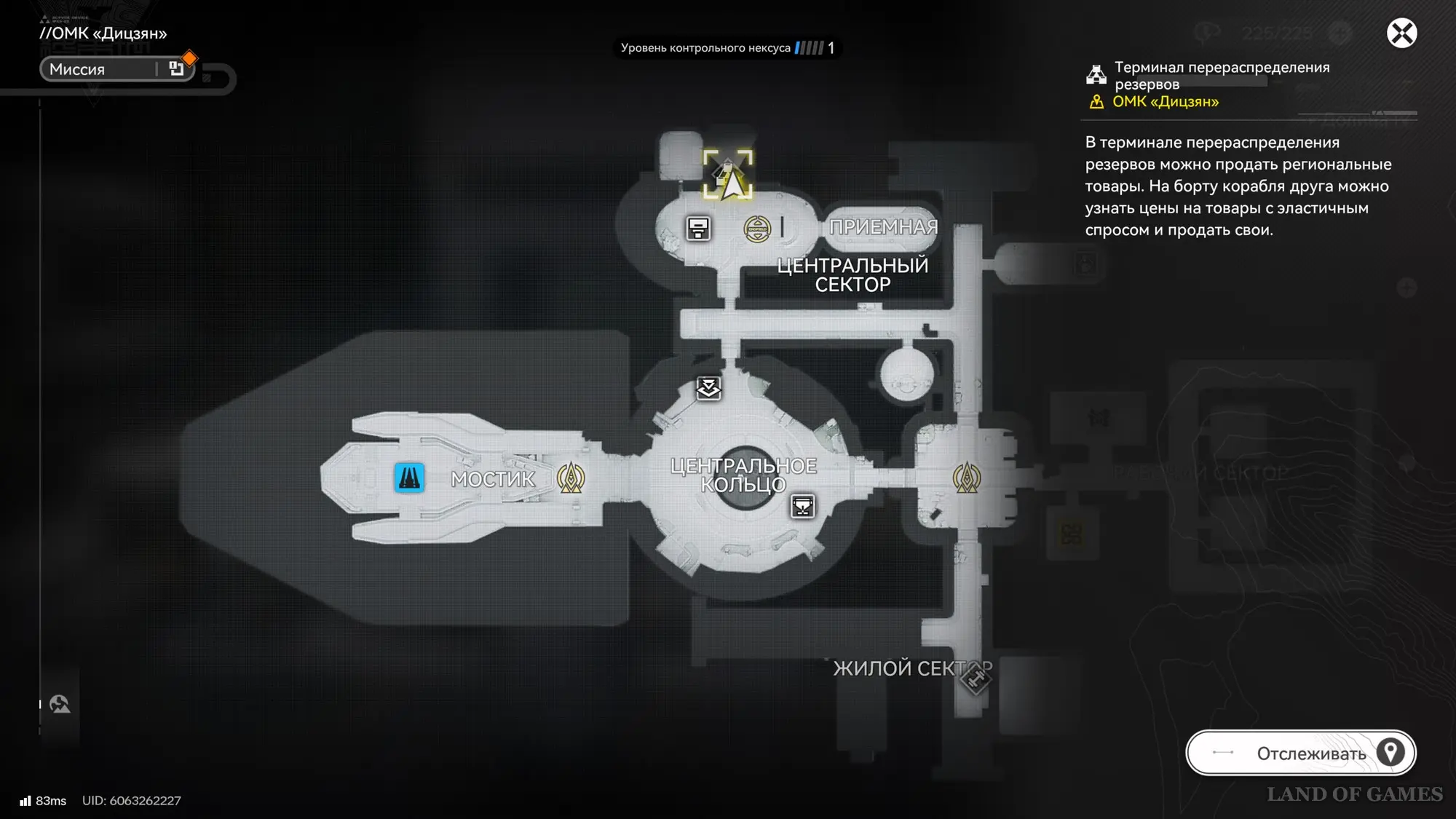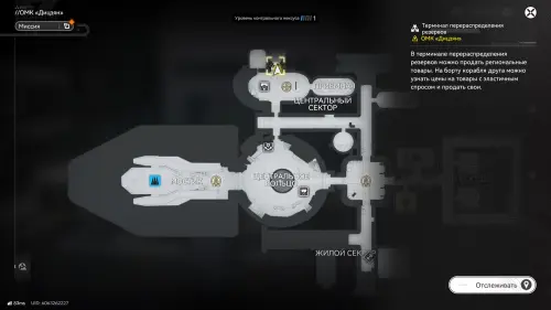 Итак, покупаем нужный товар на все деньги, а потом опять переходим в меню «Цена друга», кликаем по аватарке нужного нам игрока и выбираем опцию «Посетить корабль друга». В итоге вы окажетесь на его ОМК «Дицзян». Теперь развернитесь и бегите к находящемуся тут терминалу перераспределения ресурсов.