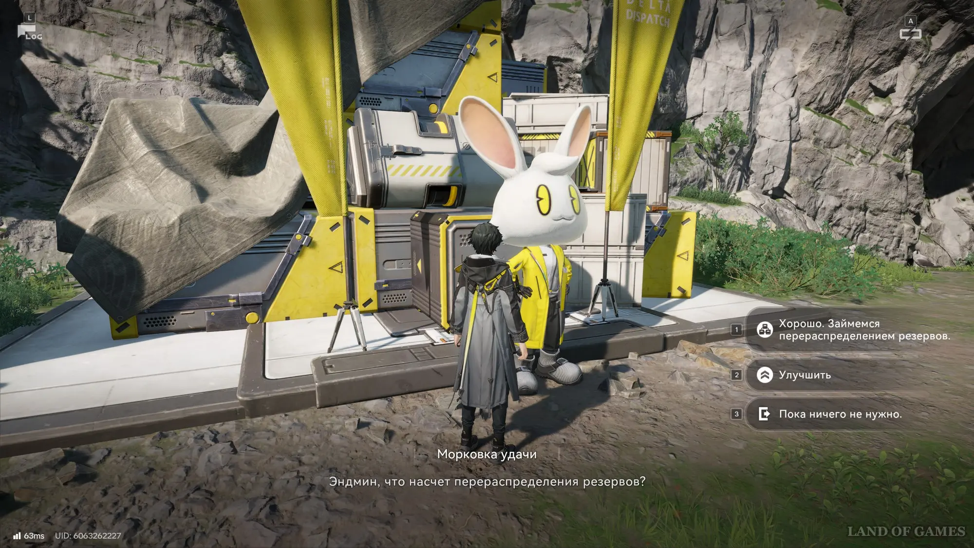 Именно в рамках данного квеста вы познакомитесь с Морковкой удачи, расположенной к югу от Базы Центра, и разблокируете свой первый терминал перераспределения резервов. Вам также коротко расскажут о его назначении.