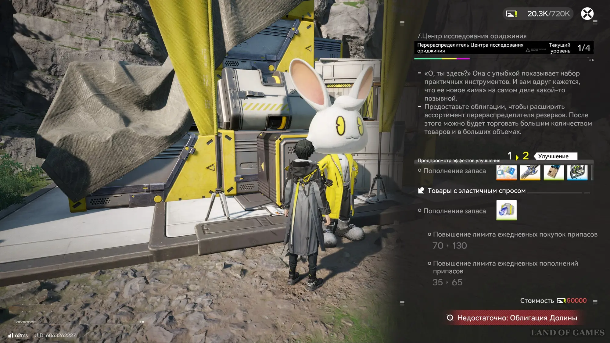 При этом вы улучшаете именно конкретный терминал, а не всю сеть целиком, поэтому необходимо будет посещать каждого кролика по отдельности и тратить на его апгрейд имеющиеся облигации. При этом каждая новая точка будет требовать все больше ресурсов на улучшение. К примеру, если самый первый терминал в Центре потребует от вас всего 4500 облигаций на прокачку до 2-го уровня, то для прокачки точки в Центре исследования ориджиния на тот же левел понадобится уже 50 000 облигаций!