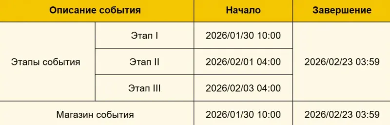 Ивент стартует 30 января 2026 года в 10:00 по времени сервера, а завершится 23 февраля в 03:59. При этом доступ к сюжетной линии останется и после его окончания. Чтобы принять в нем участие, вам предстоит для начала выполнить несколько условий, к которым относятся: