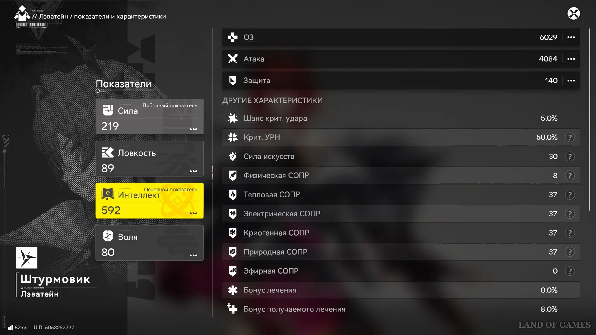 - Основной показатель: Интеллект.