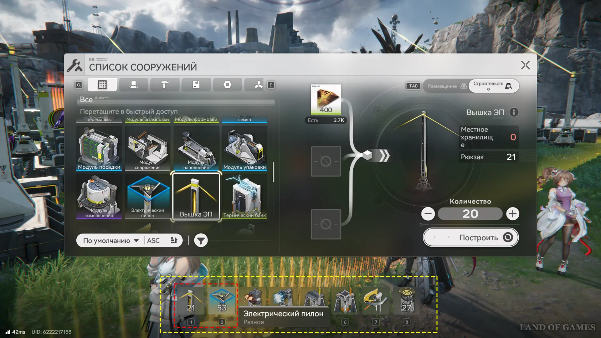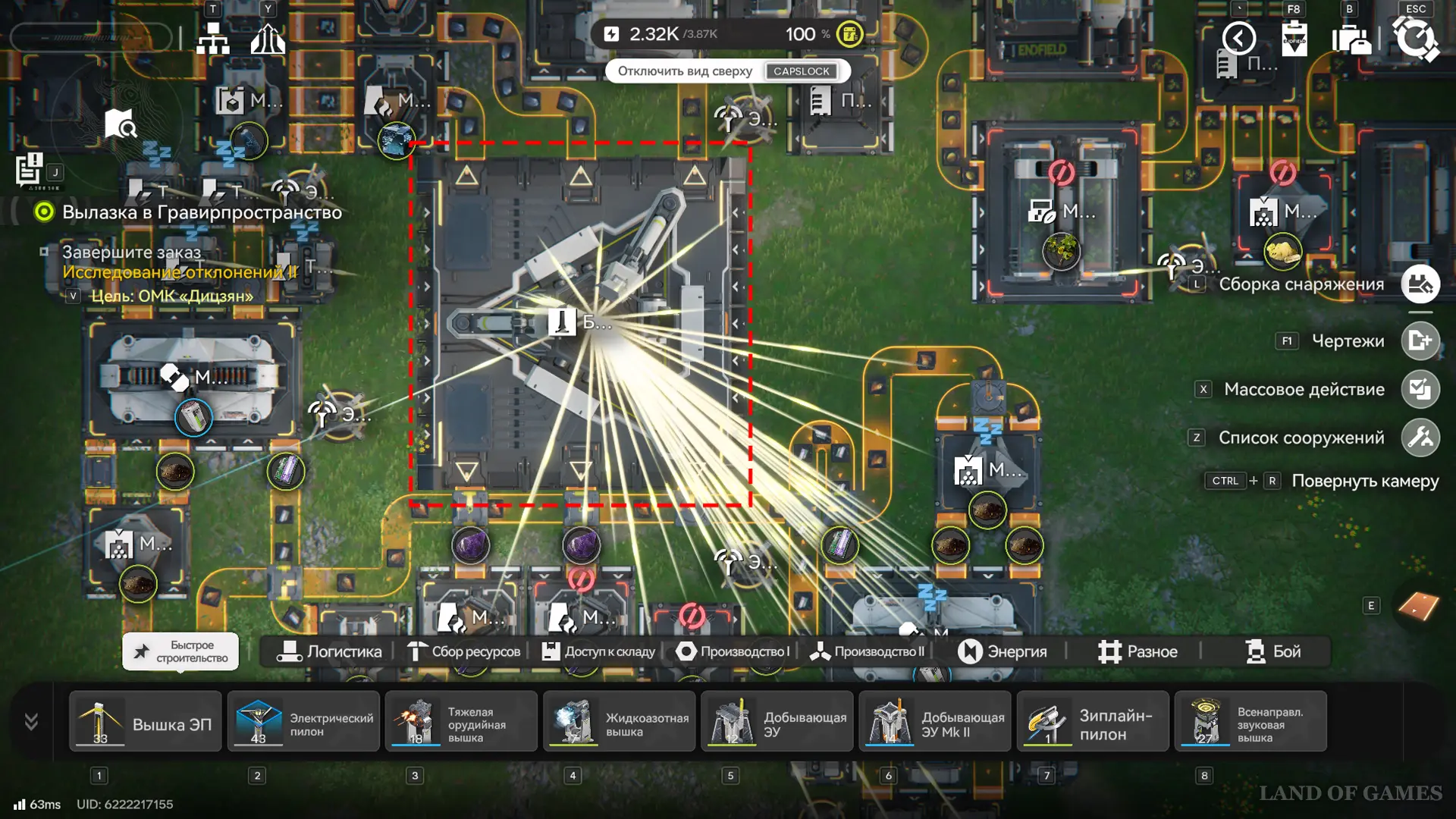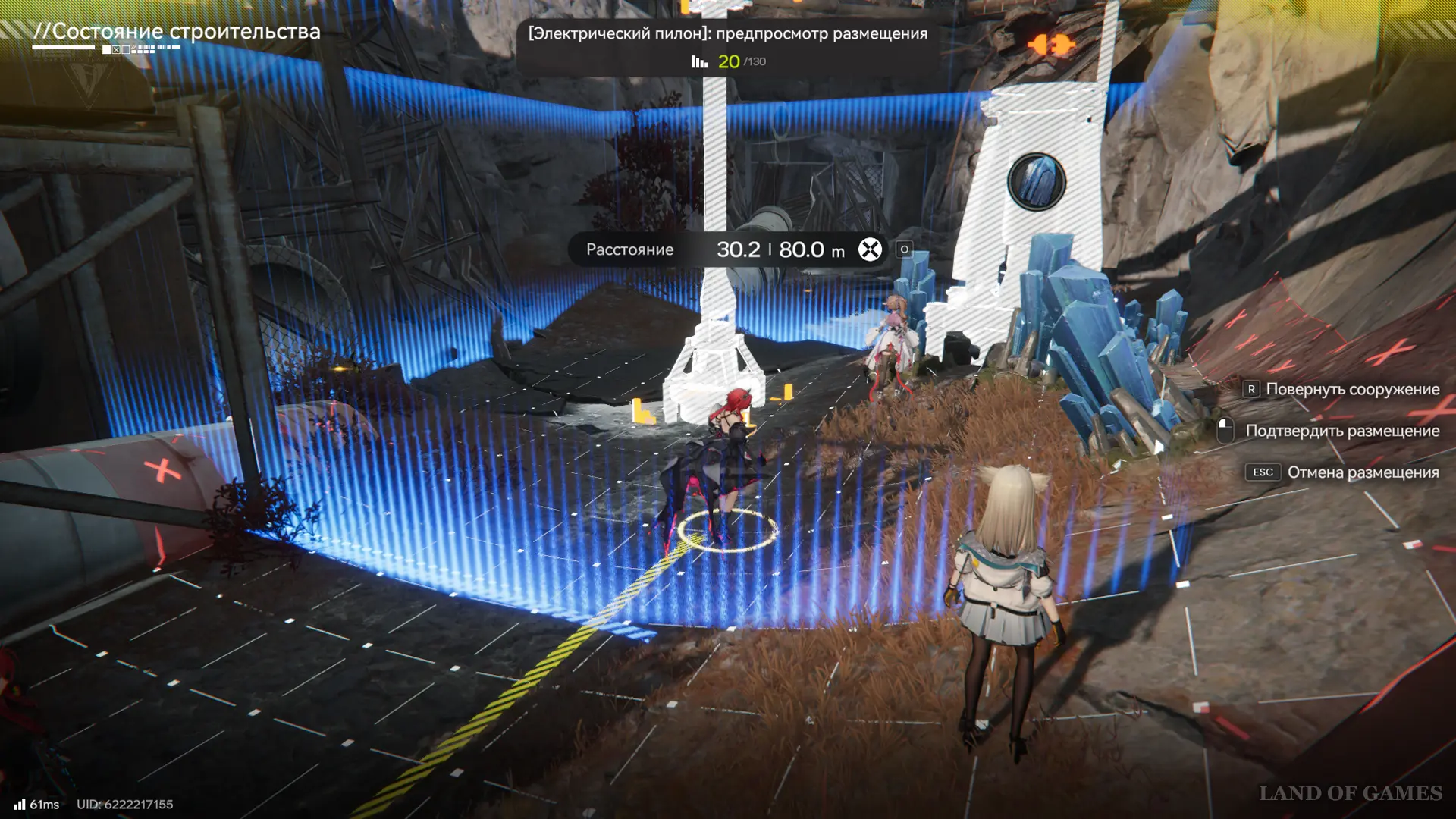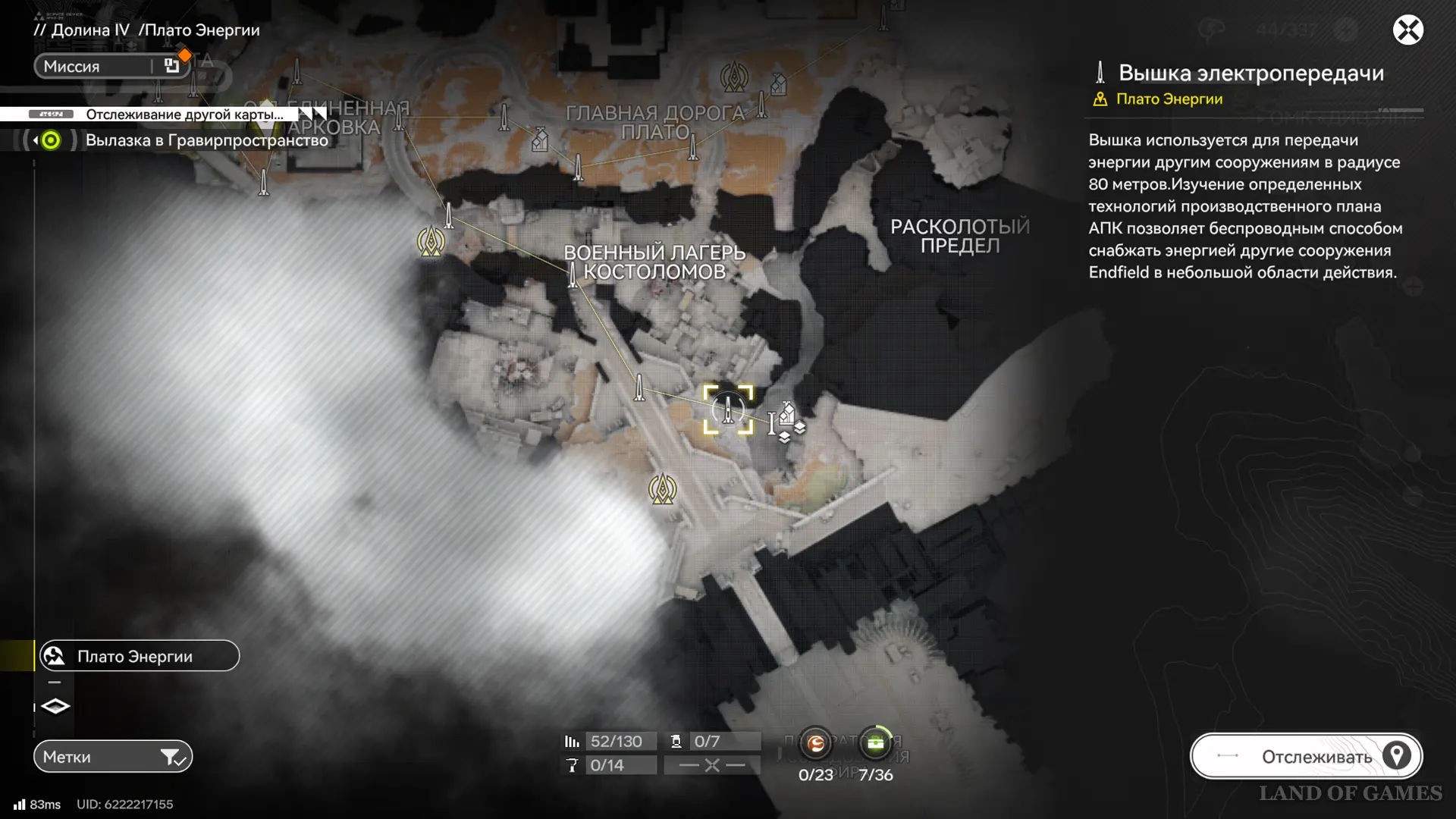 Энергия поступает только из главной ПБА и аванпостов (линия до 80 метров, как вышки), а по региону распространяется по вышкам электропередачи — их нужно размещать вручную рядом с точками добычи, зиплайнами и нексусами, питающими батуты или пульты управления.