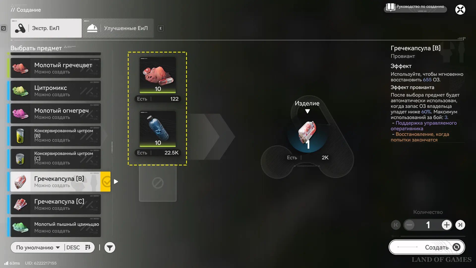 Наладив производство порошка из песчанолиста, переходите к созданию кристоновых компонентов, гречекапсул [А] и СЕ батарей. Компоненты из кристона нужны для крафта фиолетового снаряжения 50-го уровня, батарея СЕ — улучшение предыдущей (МЕ) версии питания для термических банков, а гречекапсулы [А] — более мощный лечебный предмет и ценный торговый товар на аванпостах.