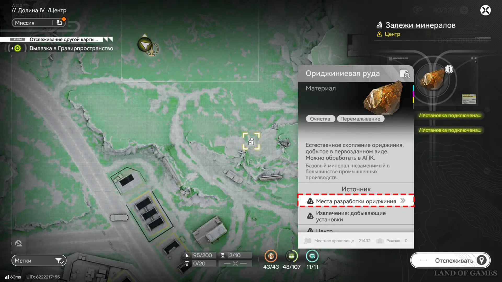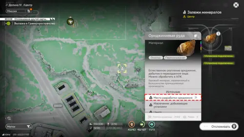 Залежи минералов — ключевой источник ресурсов. После разблокировки добывающих ЭУ достаточно установить их на сформированном месте сбора, и ресурсы будут автоматически поступать в хранилище АПК. Однако все узлы добычи требуют подключения к электросети, поэтому энергию к ним придется подводить вручную, размещая по пути пилоны или вышки.