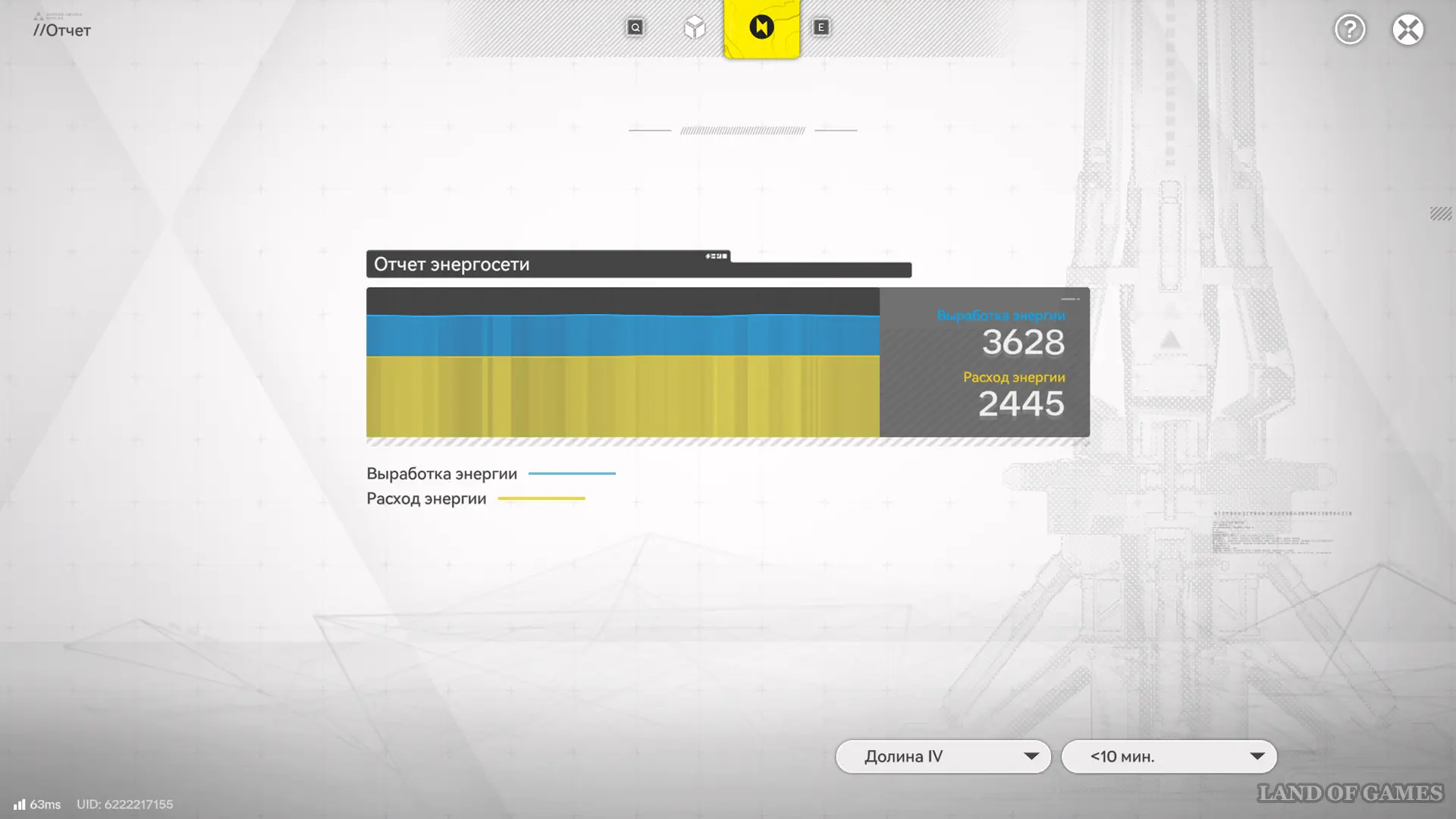 - Просматривать отчетность производства отдельных предметов и выработку энергии;
