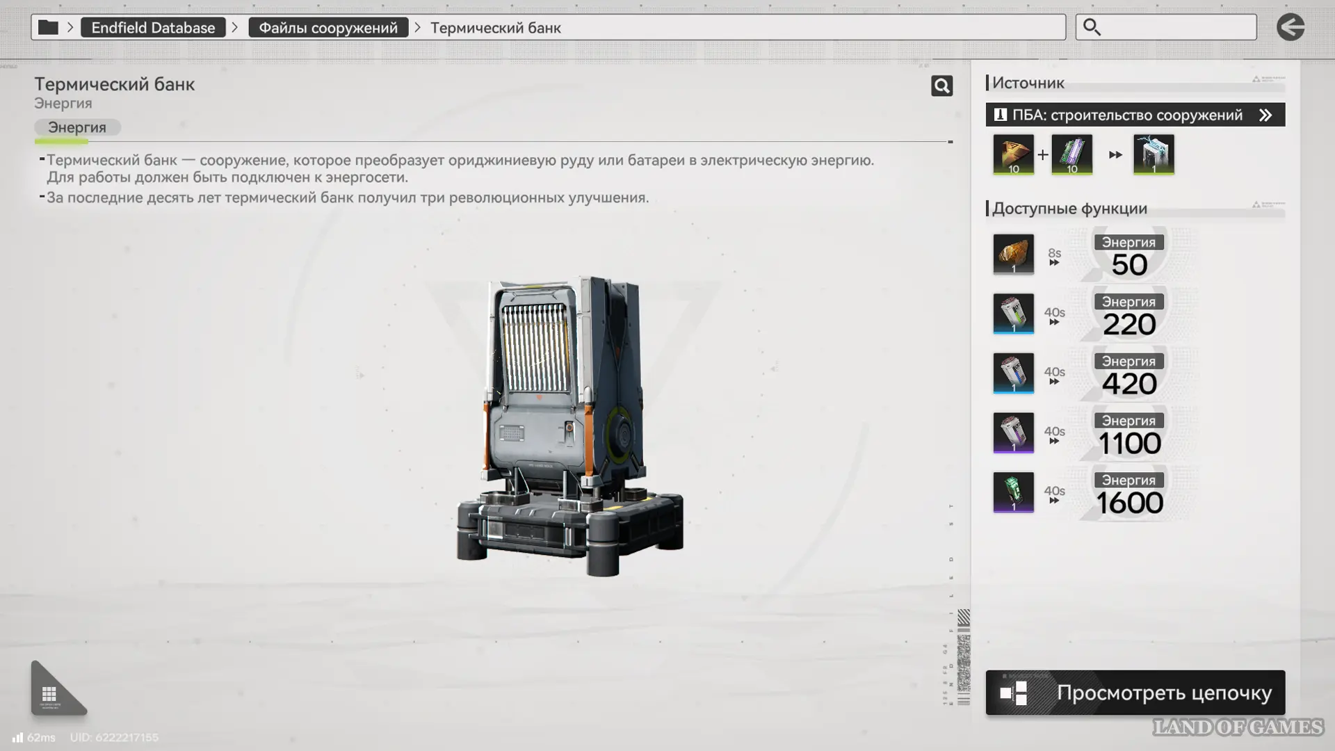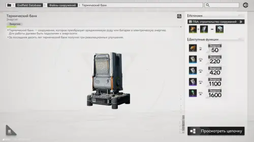 Чтобы расширить выработку энергии, установите в области ПБА термические банки — они перерабатывают ориджиниевую руду и батареи в энергию. Батареи дают больше энергии, чем руда, поэтому стоит постепенно наладить их производство и повышать редкость готового изделия.