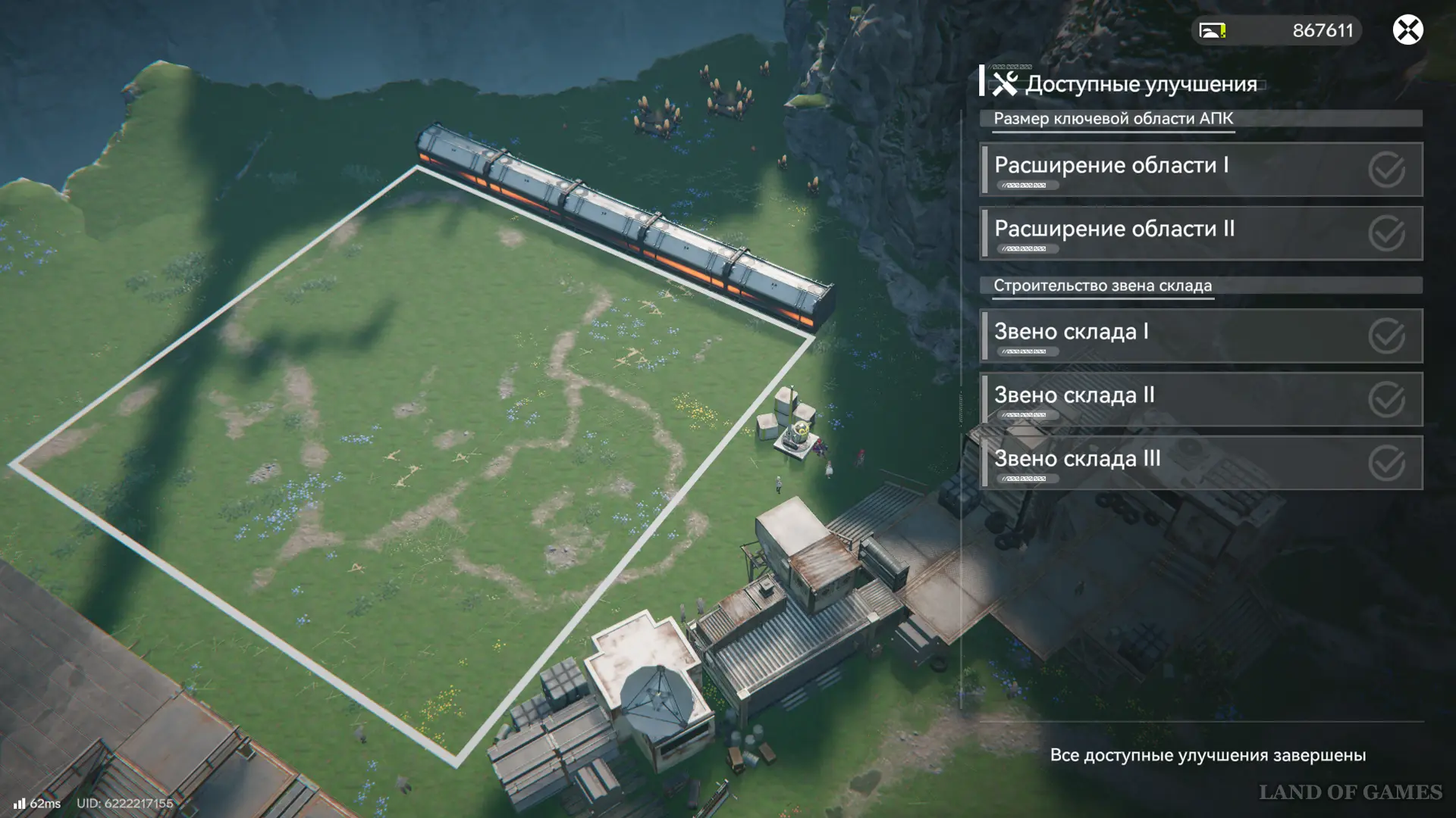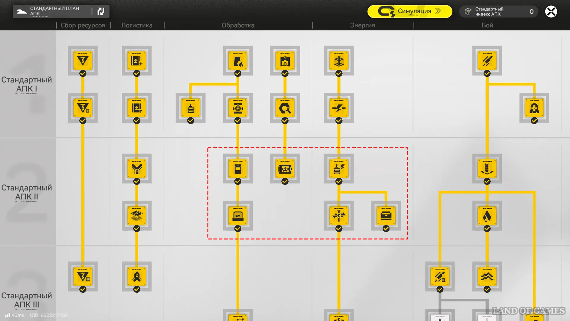 Аббревиатурой АПК (автоматический промышленный комплекс) обозначают главную базу компании Endfield в любом регионе, а ПБА (протокольный блок автоматизации) является центральной постройкой, через которую осуществляется загрузка и выгрузка имеющихся на складе ресурсов, а также энергоснабжение. Попав в ключевую область завода, ограниченную желтым периметром, вы автоматически переключитесь на режим АПК и сможете: