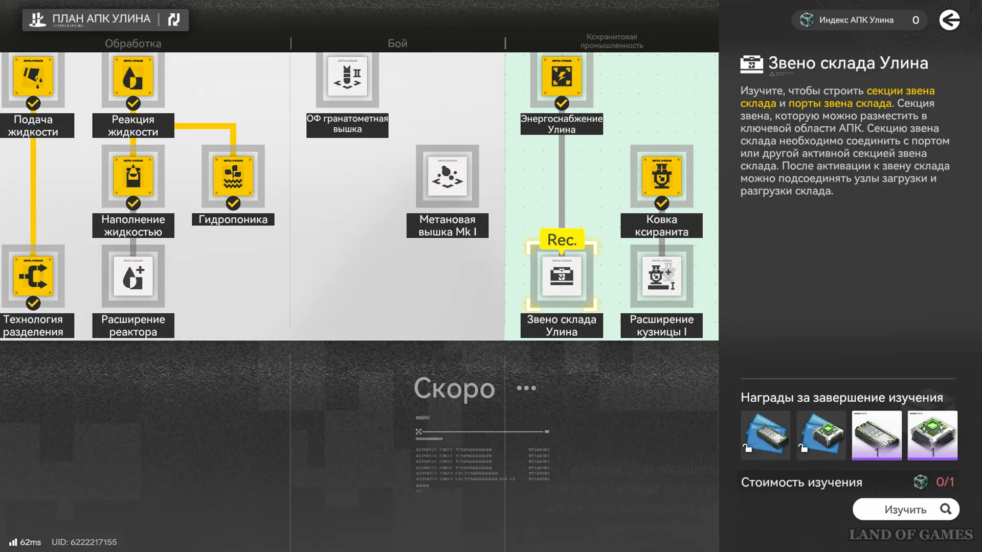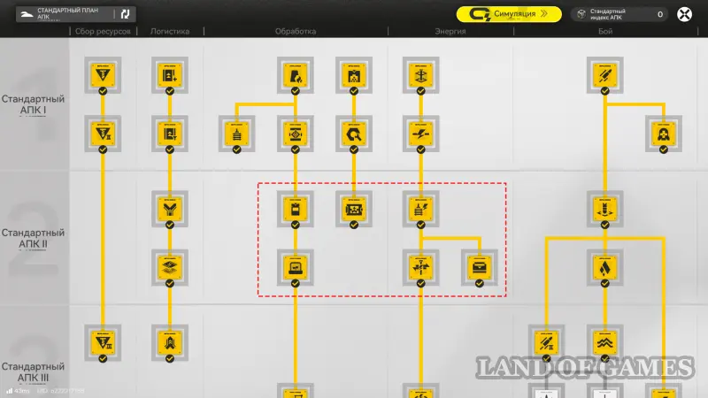 На старте игры вам откроется древо прокачки Плана АПК, а среди веток будут окошки с пометкой «Rec.»— они указывают на то, что стоит улучшить в первую очередь. Достаточно следовать этим рекомендациям и выполнять прописанные при изучении требования.