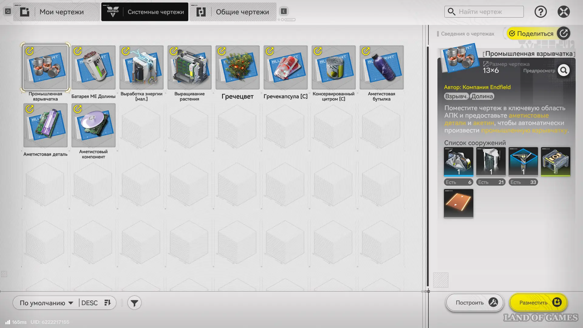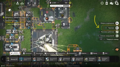 Строительство производственных узлов — самый трудоемкий этап развития завода, поэтому в игре предусмотрена система чертежей, позволяющая использовать как стандартные схемы, так и проекты других игроков. Чтобы добавить себе пользовательский проект, перейдите в меню системы (на F1, находясь в режиме АПК около любой ПБА), выберите сверху вкладку «Общие чертежи», а затем снизу «Импорт. чертежа».