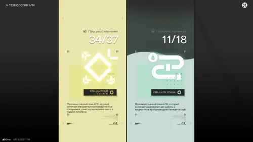 Чертежи (F1) помогают сэкономить время, так как с их помощью можно быстро собирать готовые связки транспортировочных лент и механизмов под конкретный продукт или целую систему товаров. Для открытия нужных схем придется проходить конкретные Симуляции — они появятся в одноименной вкладке после изучения в плане АПК (T).