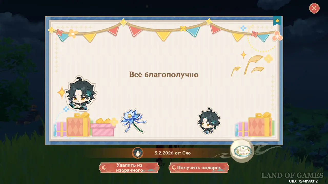 - За 6 снимков — 120 монет удачи, 4 книги опыта искателя приключений, 30000 моры;