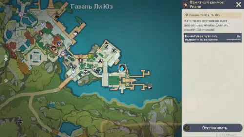 От северного телепорта в гавани Ли Юэ пройдите к ближайшему зданию и поднимитесь на 3 этаж, затем пройдите на мост.