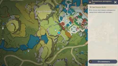 От Ка Мина поднимитесь по ближайшей лестнице на 3 этаж. Поговорите с парфюмером из Сумеру об отдыхе и запустите фонарь с соответствующими пожеланиями.