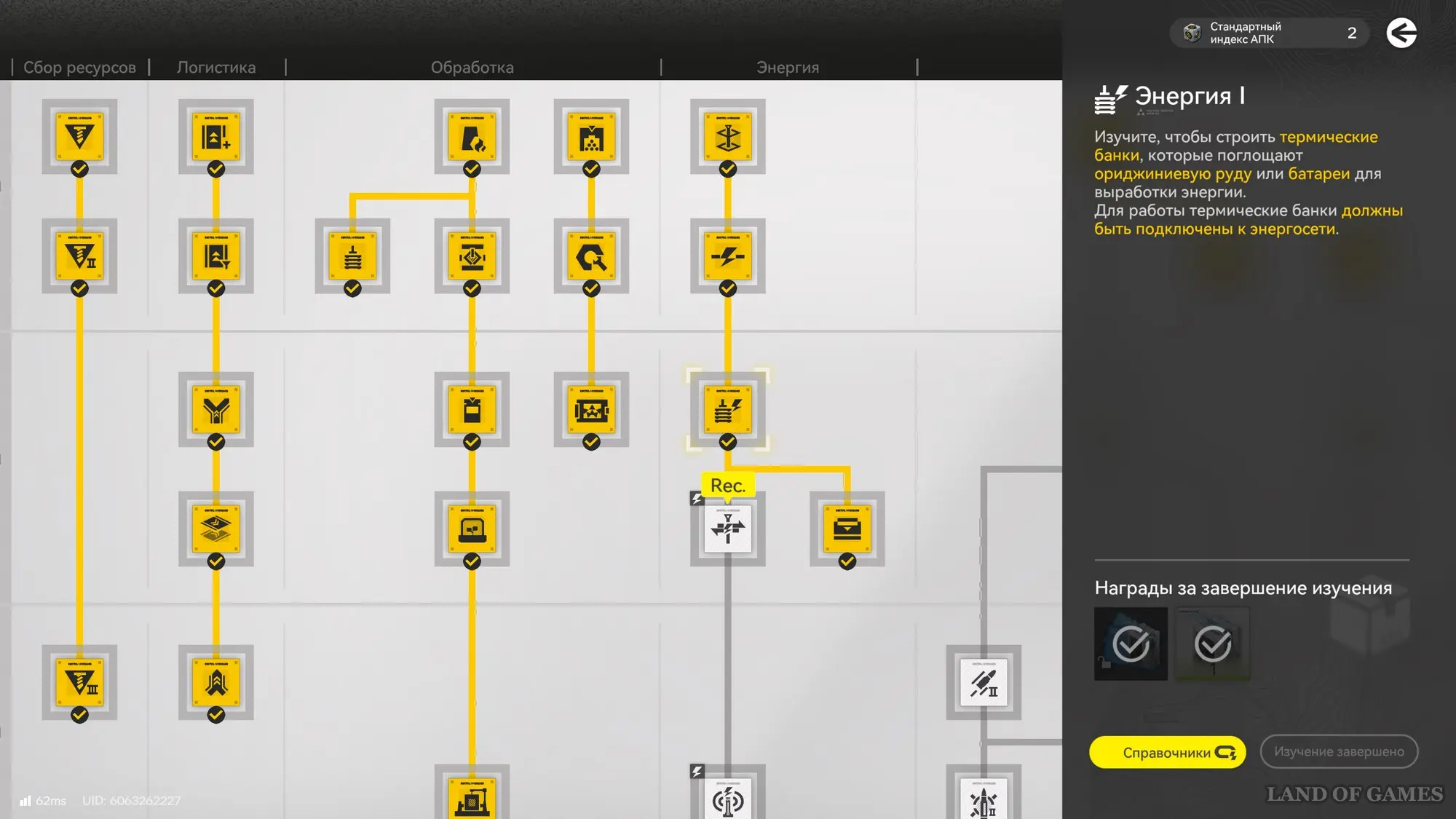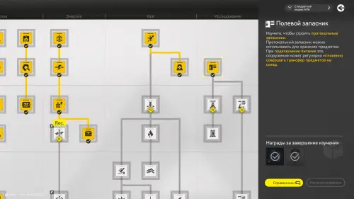 Откройте план АПК и найдите технологию «Энергия I» во второй фазе (если она у вас еще не открыта, то продвиньтесь дальше по сюжету), а затем разблокируйте ее, потратив 1 очко индекса (напоминаем, что для их получения необходимо находить и активировать протокольные регистраторы). Тем самым вы получите доступ к Термическим банкам.