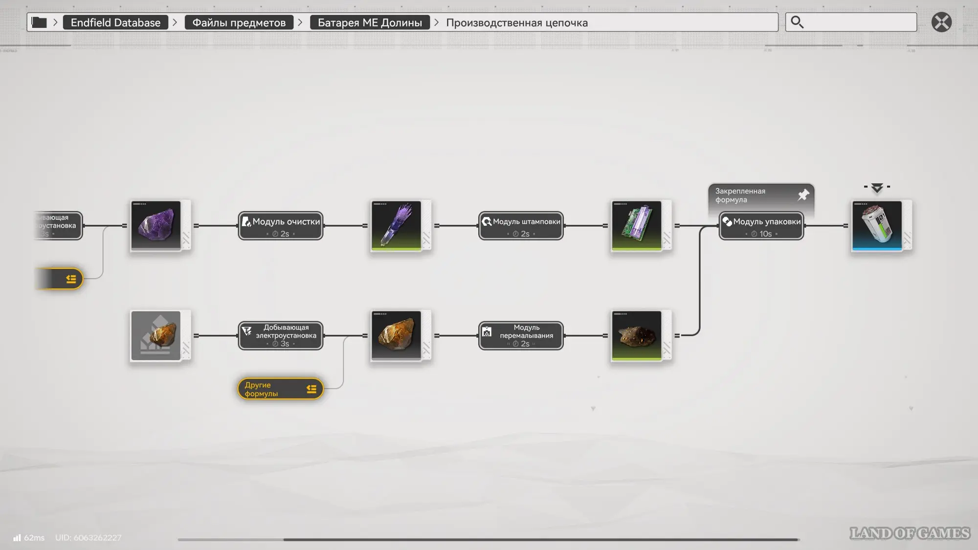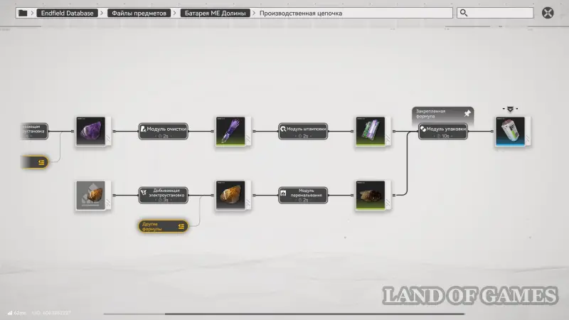 Итак, если вы посмотрите производственную цепочку этой батареи, то увидите, что для ее создания требуются аметистовые детали и молотый ориджиний. Оба этих материала вы сможете производить уже на начальном этапе игры, поэтому проблем с их производством возникнуть не должно.