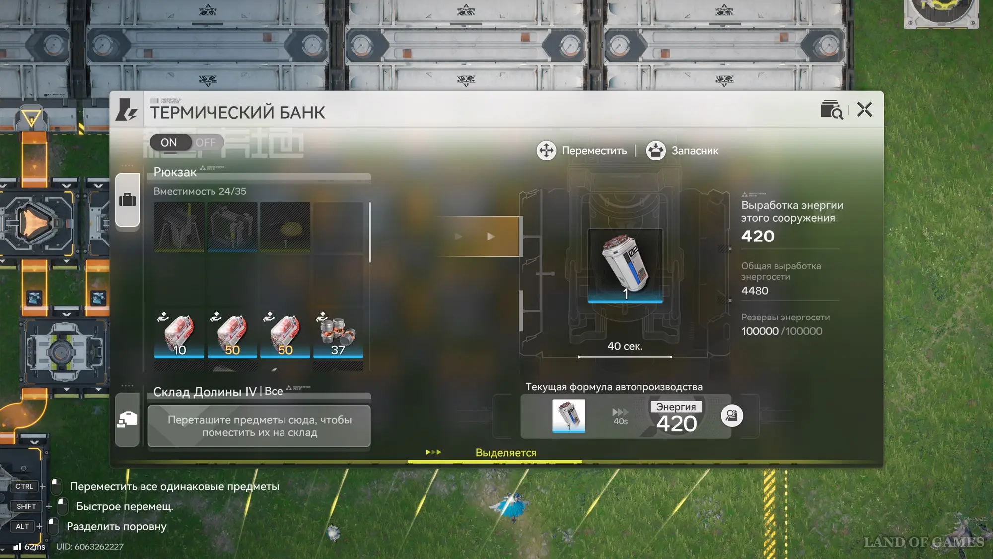 Термические банки поглощают ориджиниевую руду или батареи, давая взамен энергию. Разумеется, батарейки будут давать больше энергии, однако на первых этапах игры вам будет достаточно и обычного ориджиния. Далее мы покажем вам, как выглядит оптимальная производственная линия, занимающая минимум места и при этом позволяющая получить массу энергии.