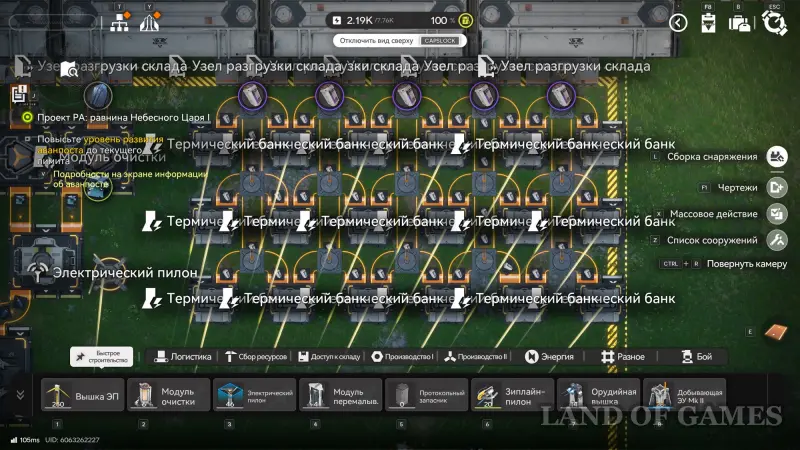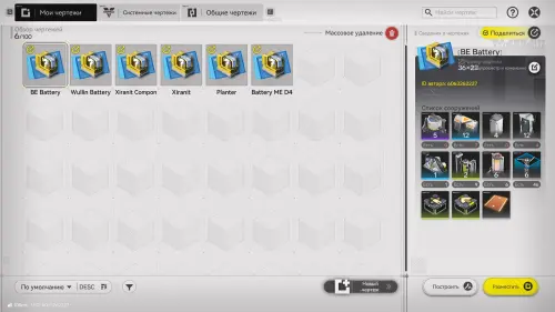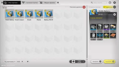 Итак, перейдите в «Чертежи», выберите нужную схему и поместите рядом со звеном склада, как продемонстрировано на скриншотах ниже. Отметим, что данная производственная цепочка занимает весьма немало места, поэтому заранее расширьте свою ключевую зону АПК. Если вам будет не хватать какого-либо оборудования, то постройте его. В итоге вы начнете изготовление новых батарей.