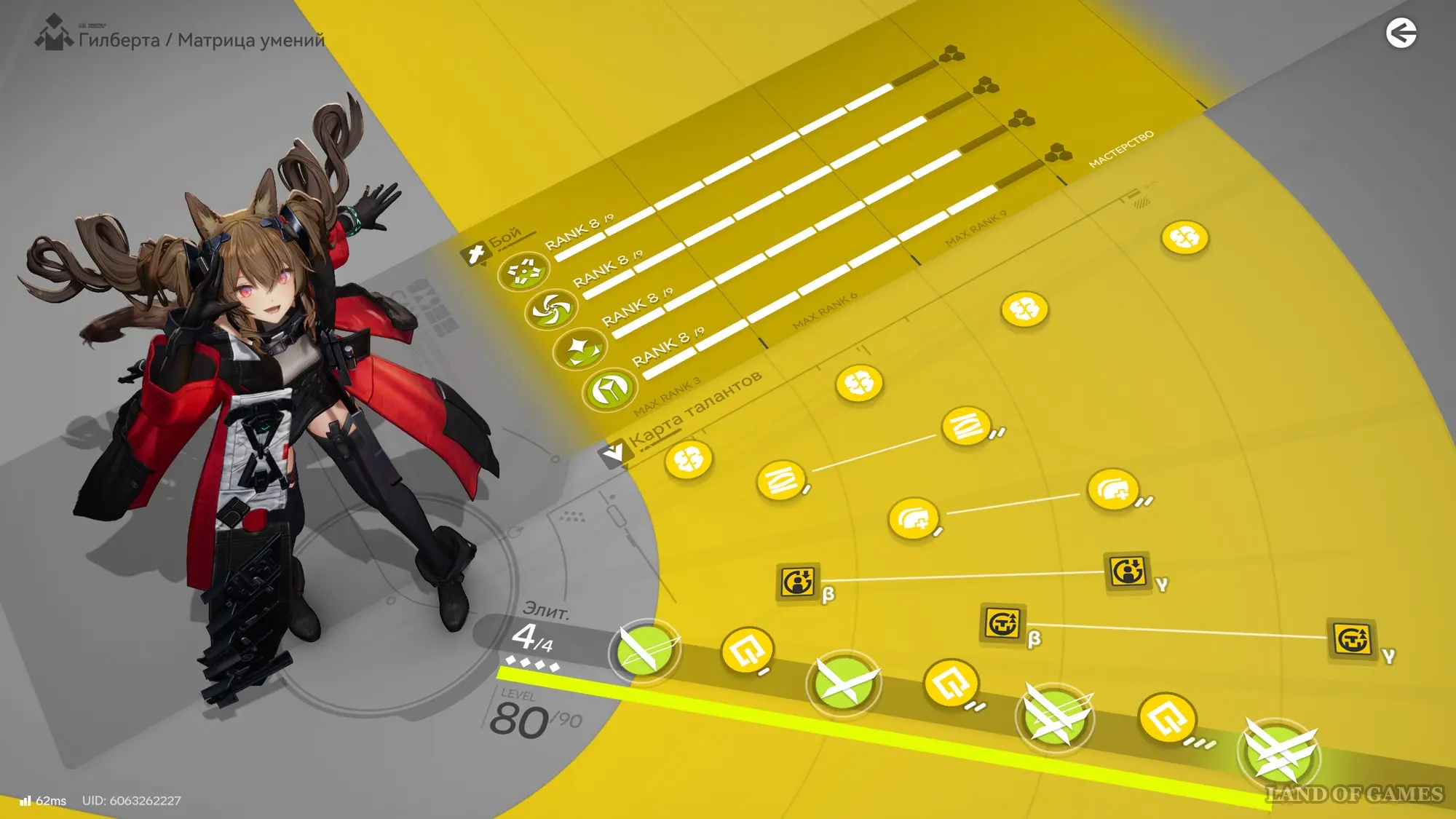 | 4) Базовая атака | Гилберта является саппортом, поэтому вы редко будете управлять ею напрямую и использовать ее базовые атаки, так что можете их вовсе не качать. |