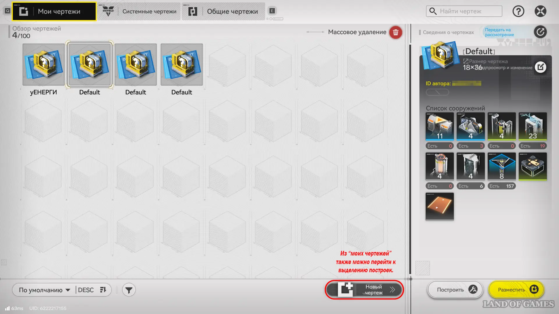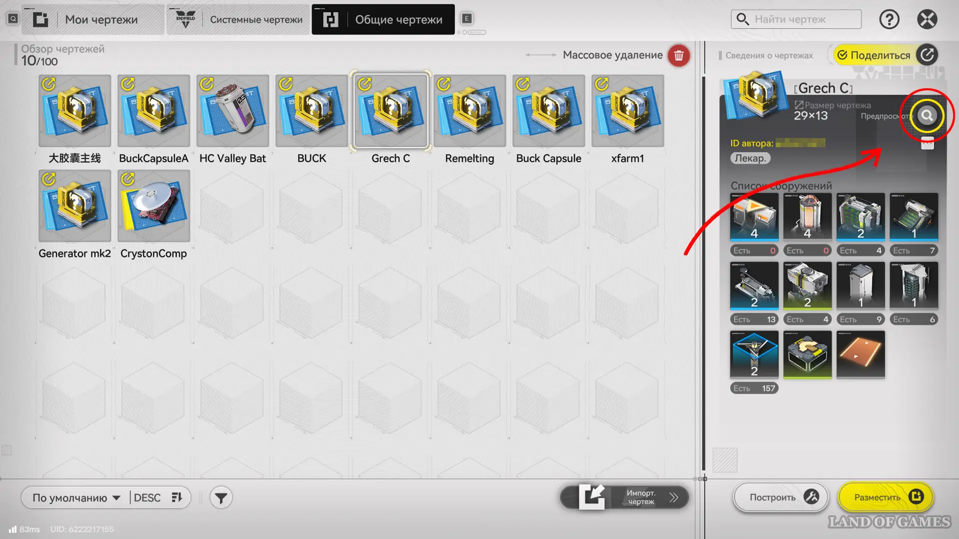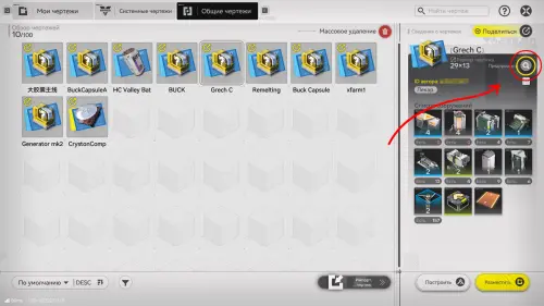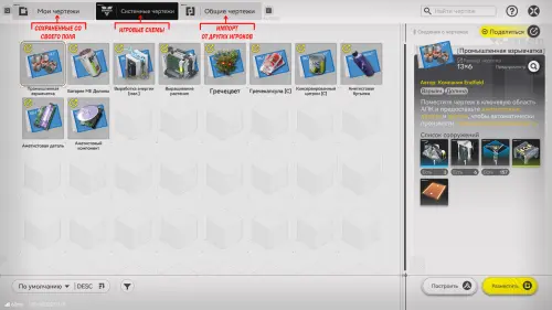 Обратите внимание: нельзя добавлять чертежи игроков с других серверов. Если вы играете на Европе/Америке, то и сохраняемая схема должна быть от игрока того же региона.