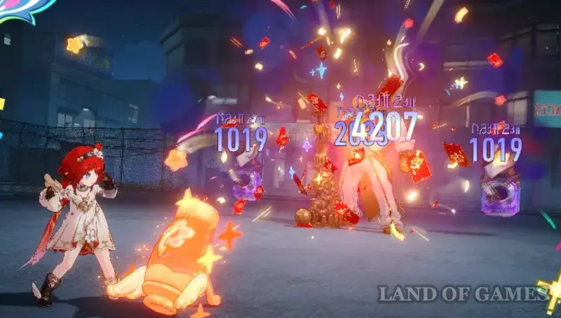 Как только приходит время хода Мига Ахи, то все персонажи Радости по очереди выполняют свои навыки Радости. К примеру, Яо Гуан тут же наложит дебафф на врагов, увеличив получаемый ими урон, а также нанесет им значительный физический урон Радости, который будет зависеть от количества накопленных зарядов Юмора.