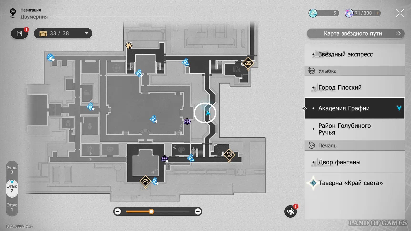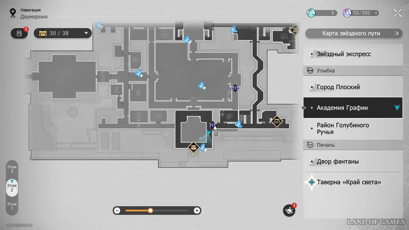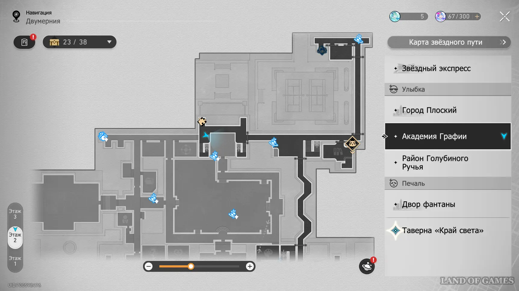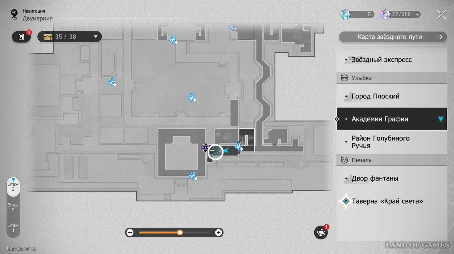 Здание академии состоит из 3-х этажей, в которых можно отыскать 32 точки сбора местных сокровищ (так как в Двухмерных прыжках может быть несколько сундучков, мы обозначим местонахождение входных труб, а уже внутри пункта покажем все трофеи). На картах выше можно будет посмотреть их примерное расположение. Далее мы в деталях расскажем вам, как до них добраться.