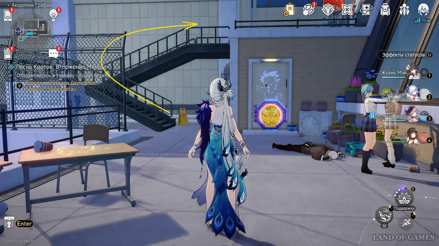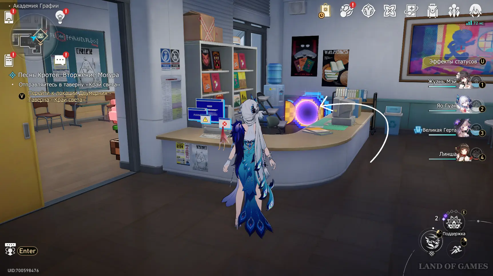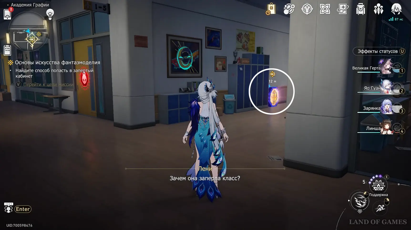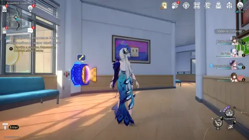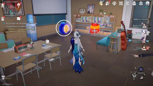 Теперь пройдите в класс искусств около одноименного якоря на юге 2-го этажа, и коснитесь синей трубы у окна.
