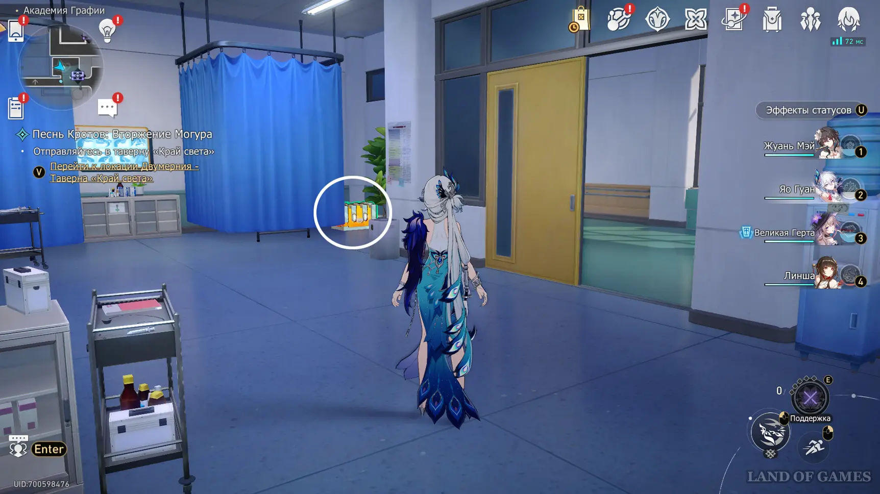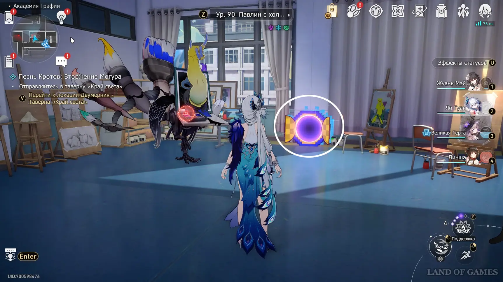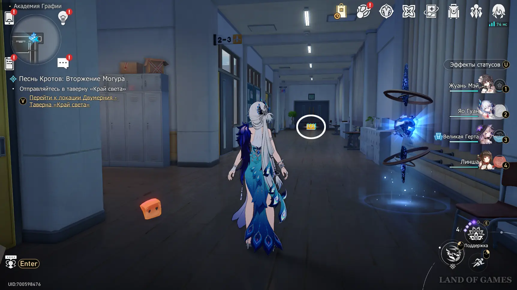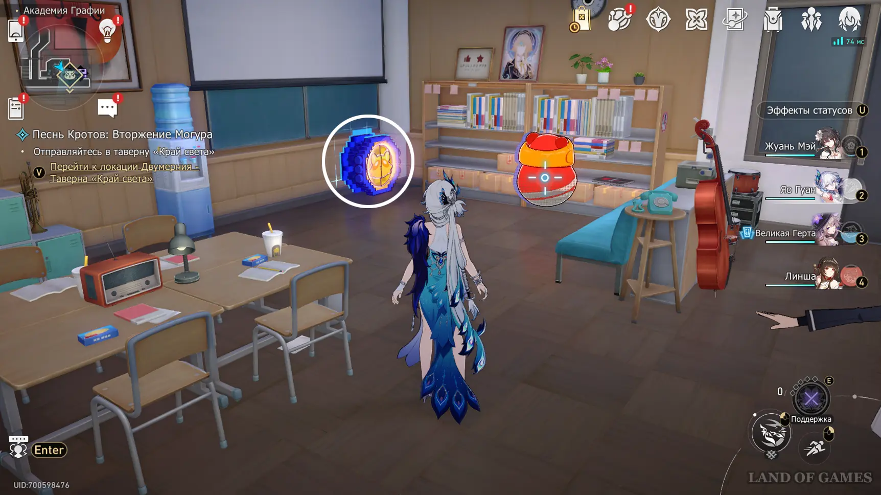 Теперь пройдите в класс искусств около одноименного якоря на юге 2-го этажа, и коснитесь синей трубы у окна.