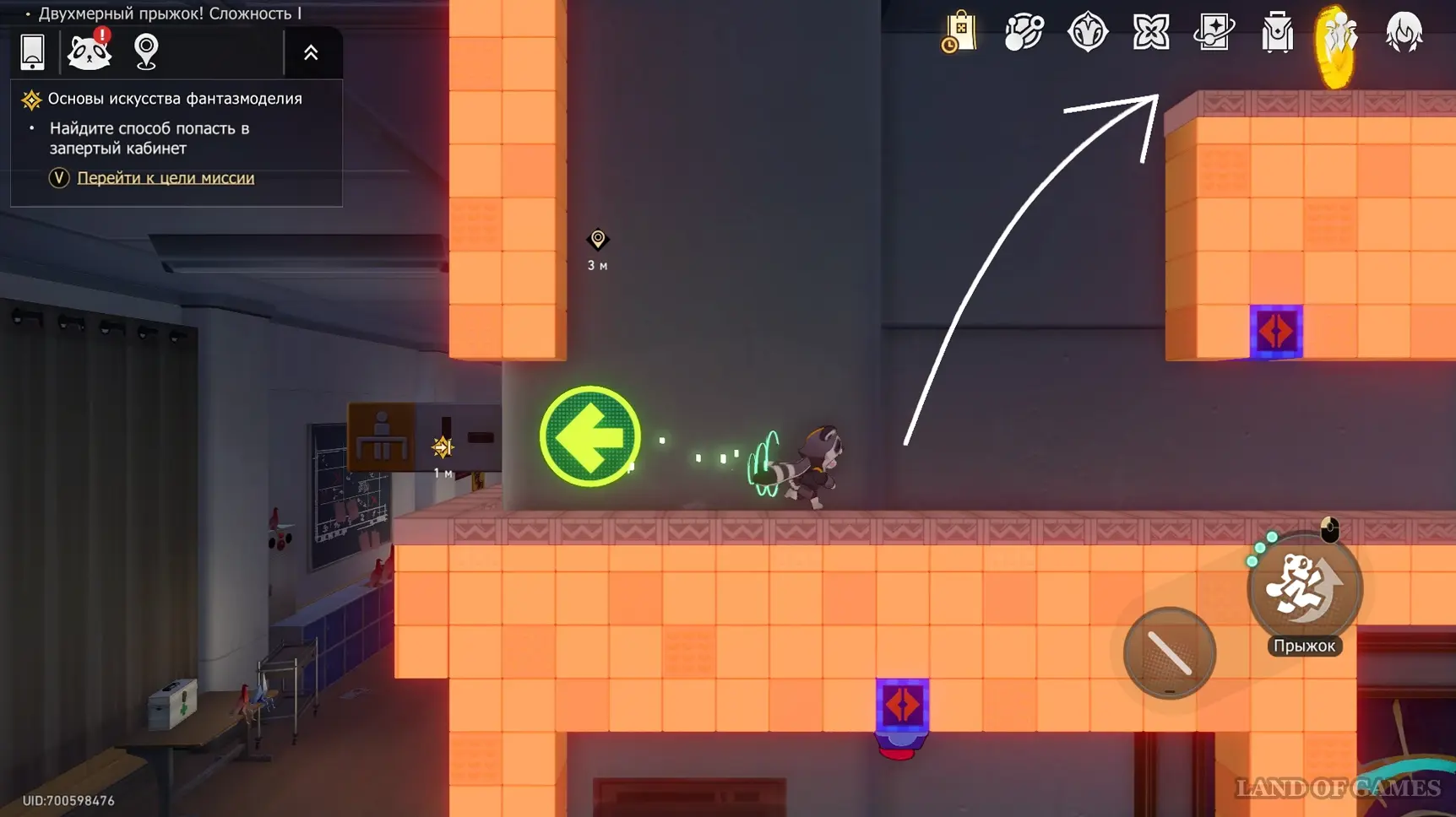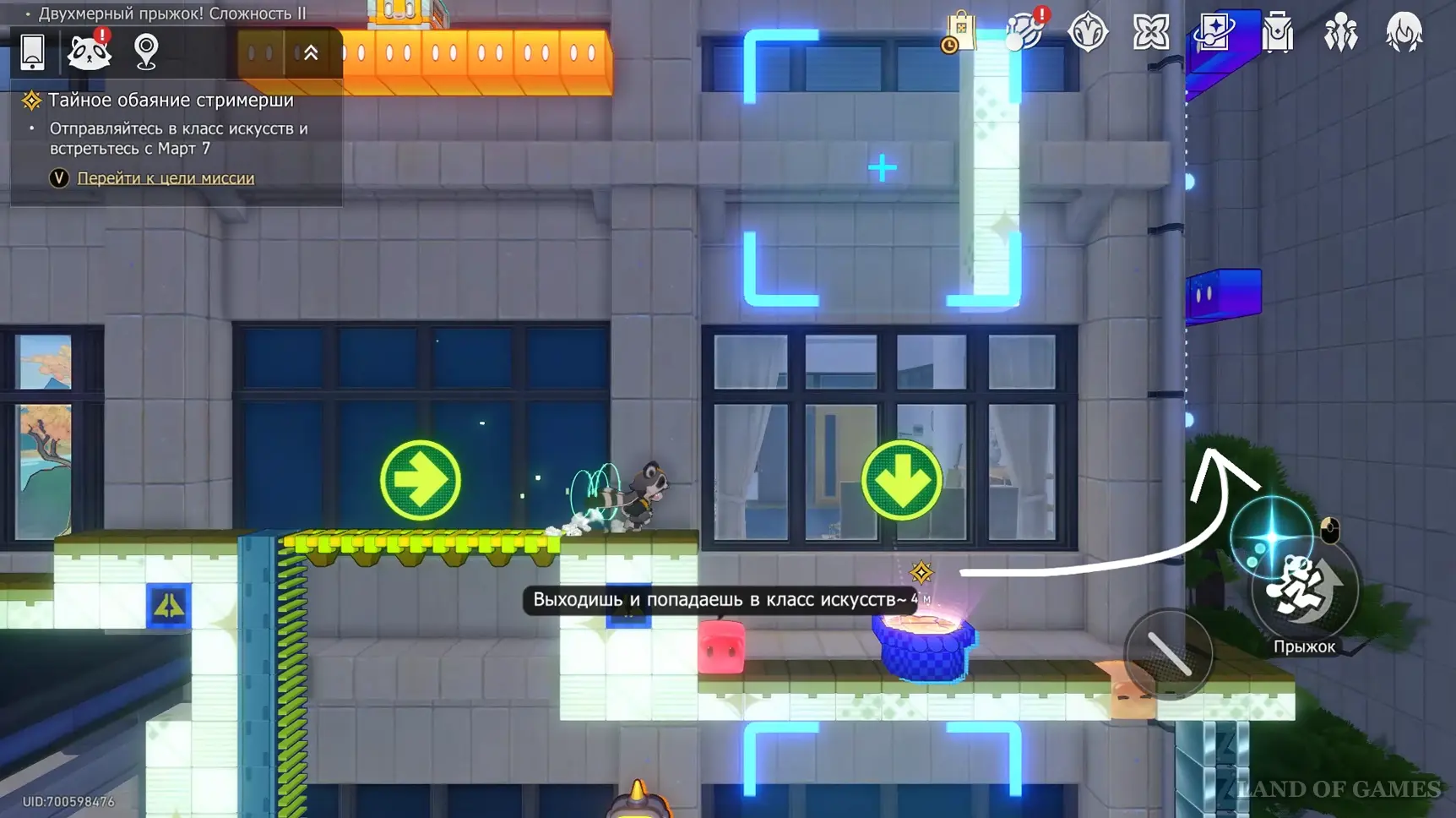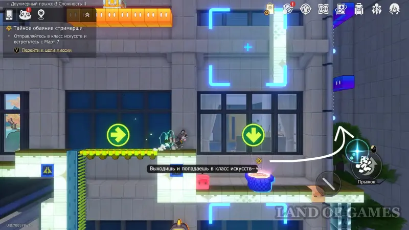 Переместитесь к якорю «Класс искусств» и следуйте по коридору на восток — тут есть проход в музыкальный кабинет, где находится последнее испытание Двухмерного прыжка.