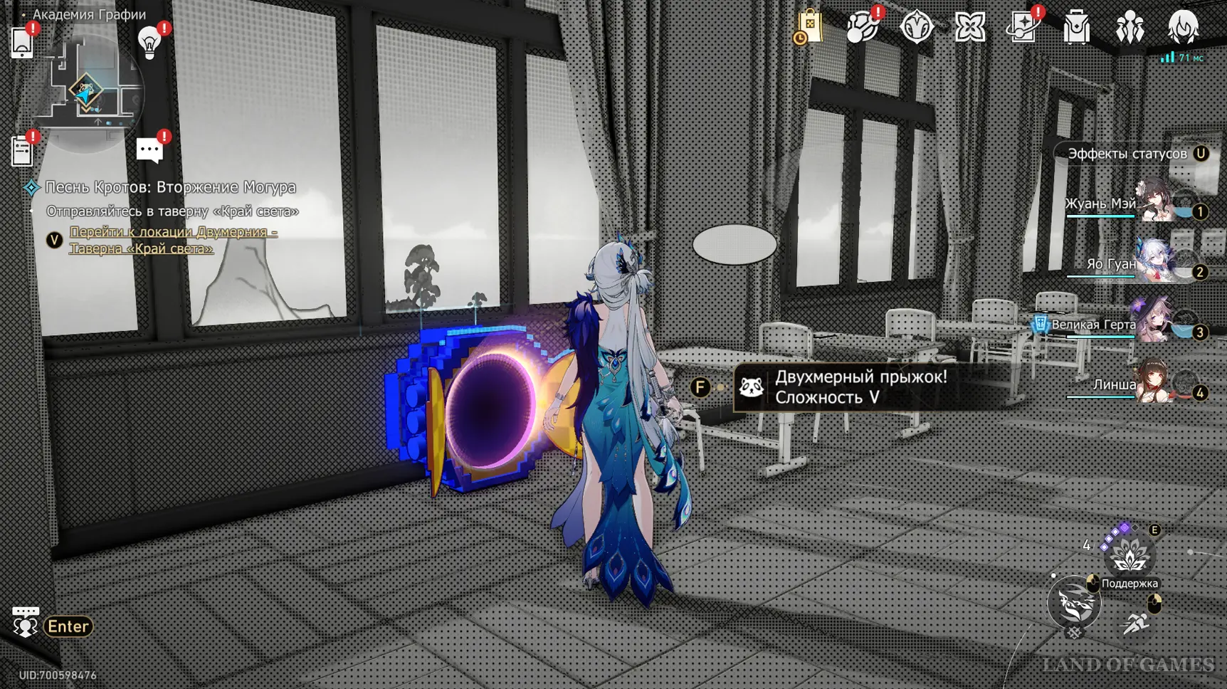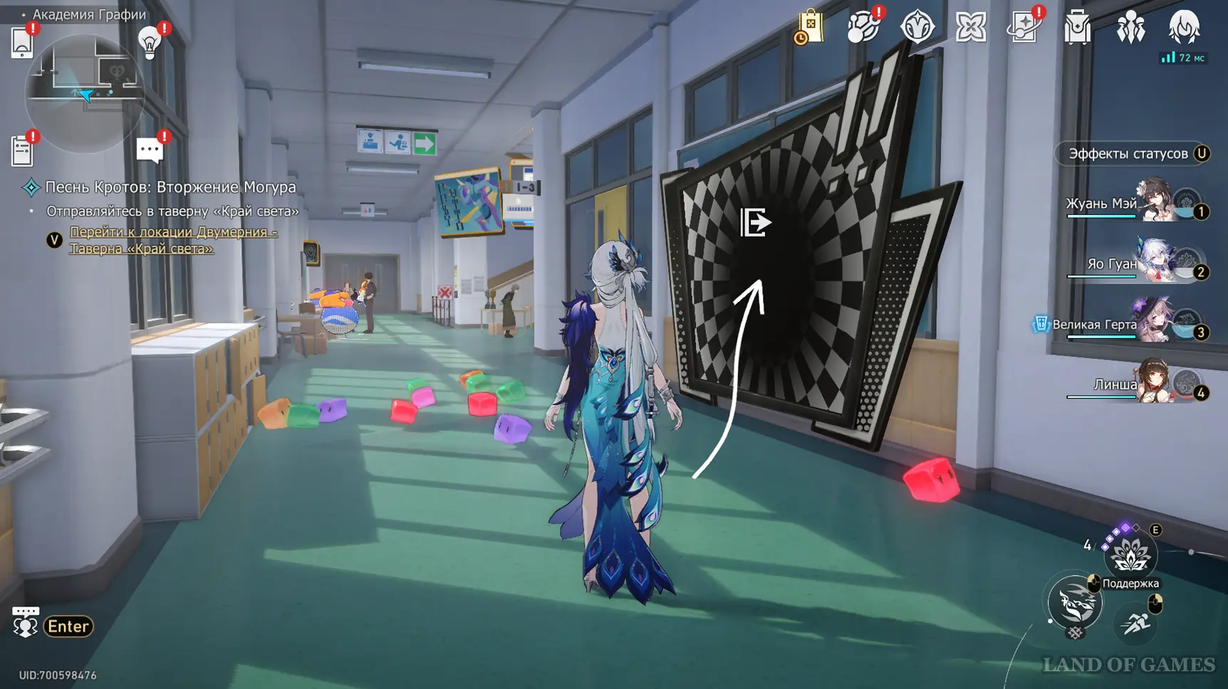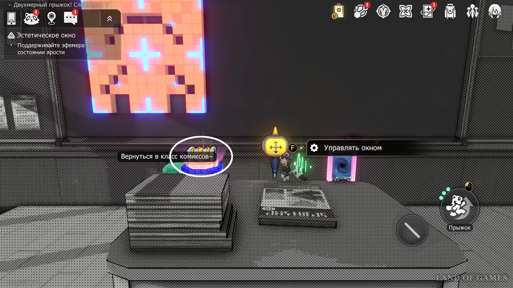 Переместитесь к якорю «Класс искусств» и следуйте по коридору на восток — тут есть проход в музыкальный кабинет, где находится последнее испытание Двухмерного прыжка.