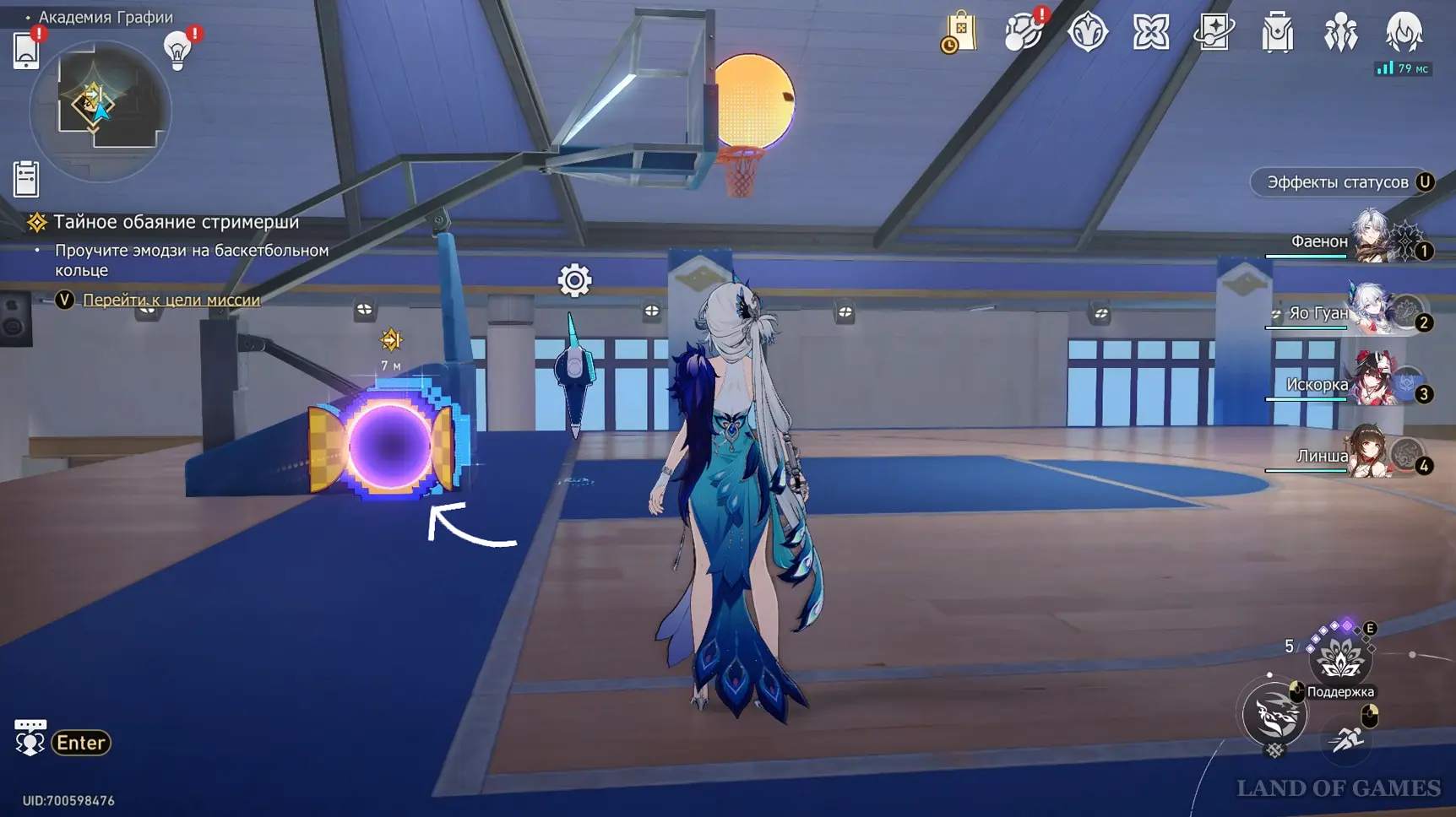 Идя на запад от телепорта в коридоре главного корпуса, вы попадете в спортзал – за скамейками в правой половине помещения можно залутать уже 7-й сундук.