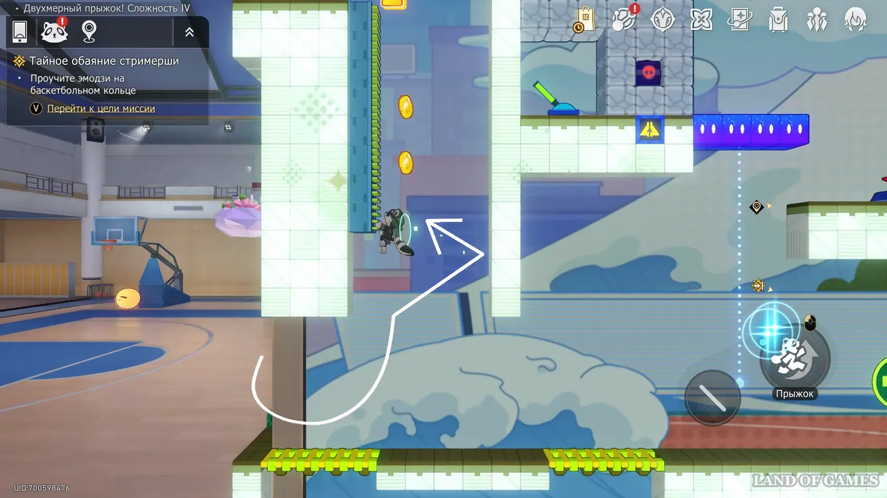 Теперь исследуем Двухмерный прыжок 5-й сложности справа от баскетбольной корзины.
