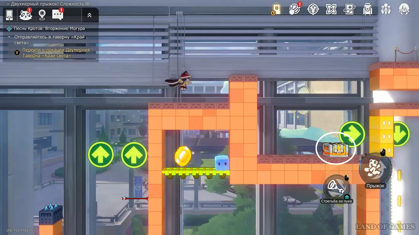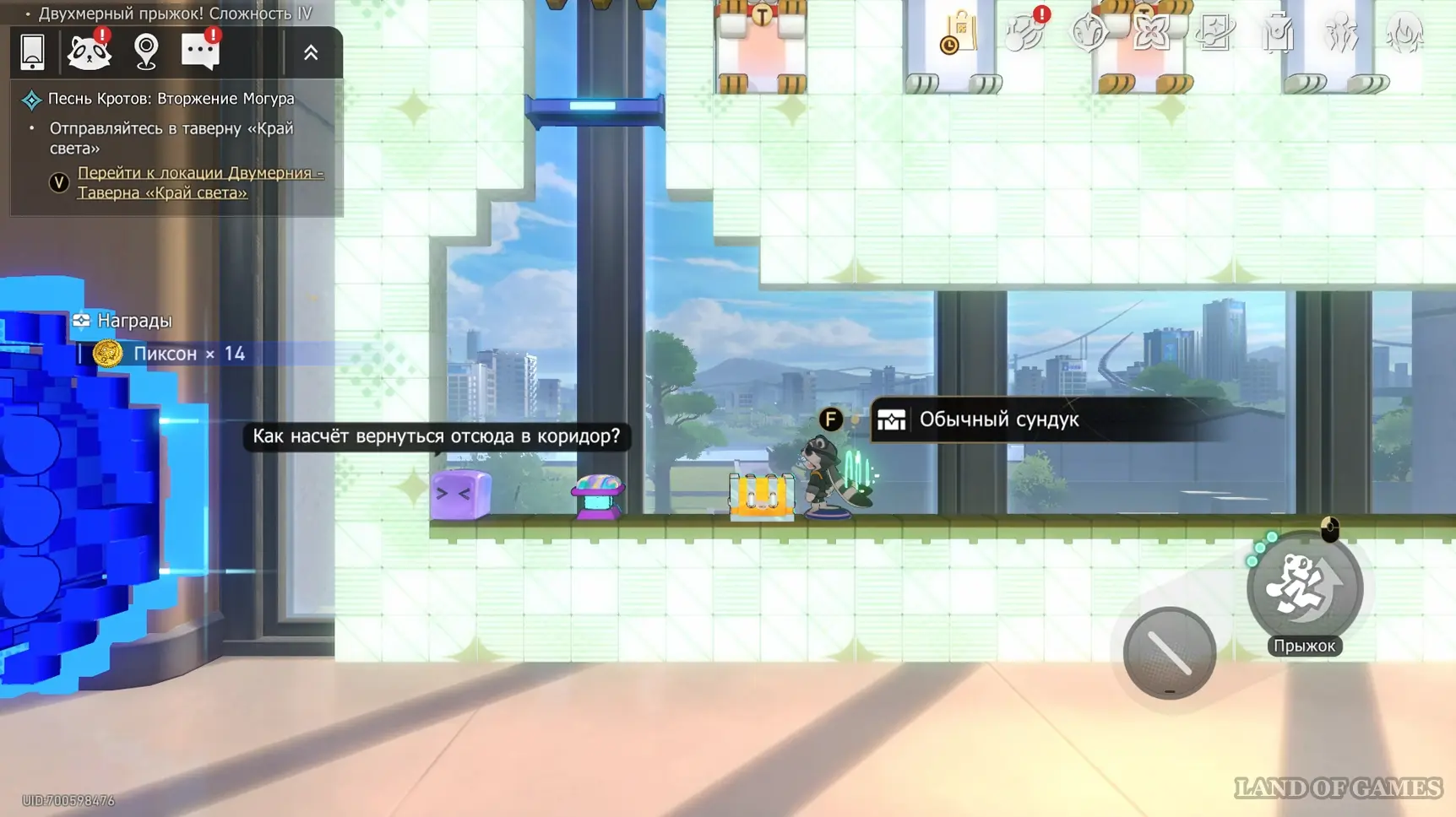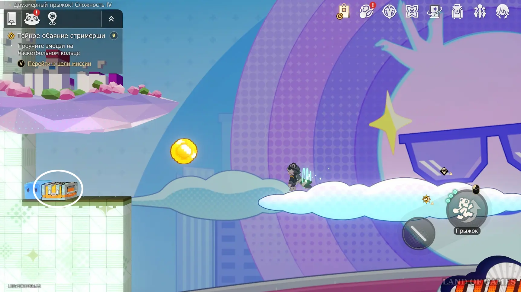 Ближе к концу испытания вы сможете выйти на крышу здания-лягушки с глазами-сердечками — на ее «носу» ждет ценный сундучок.