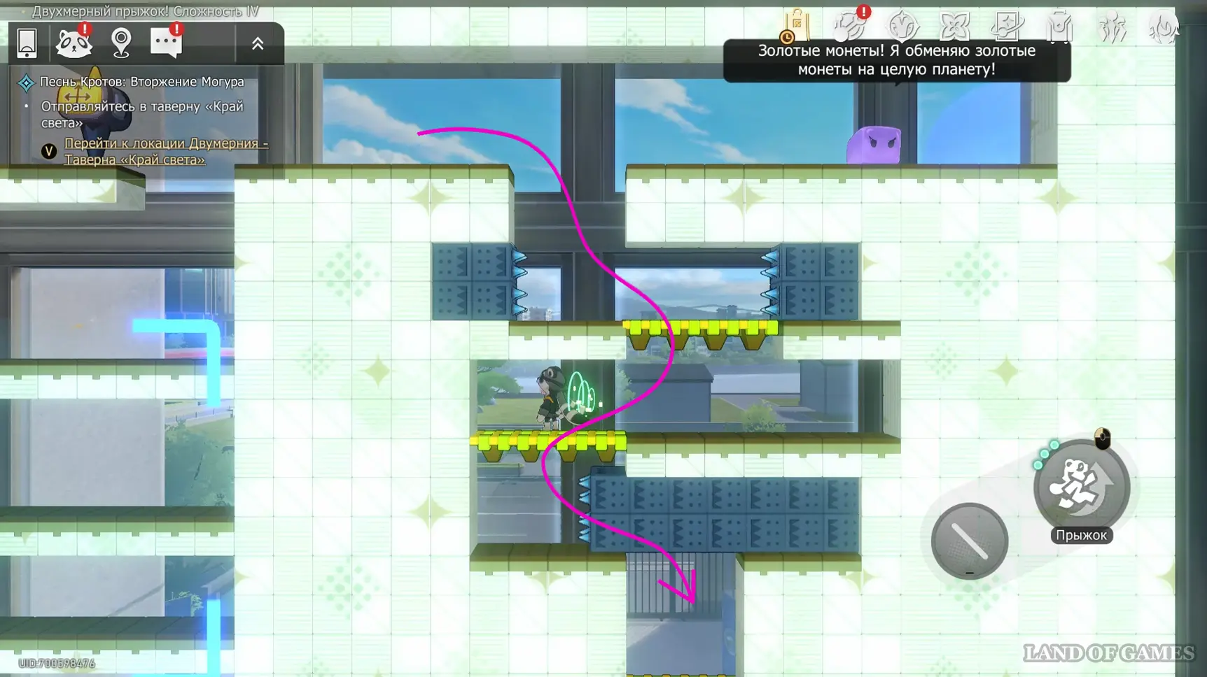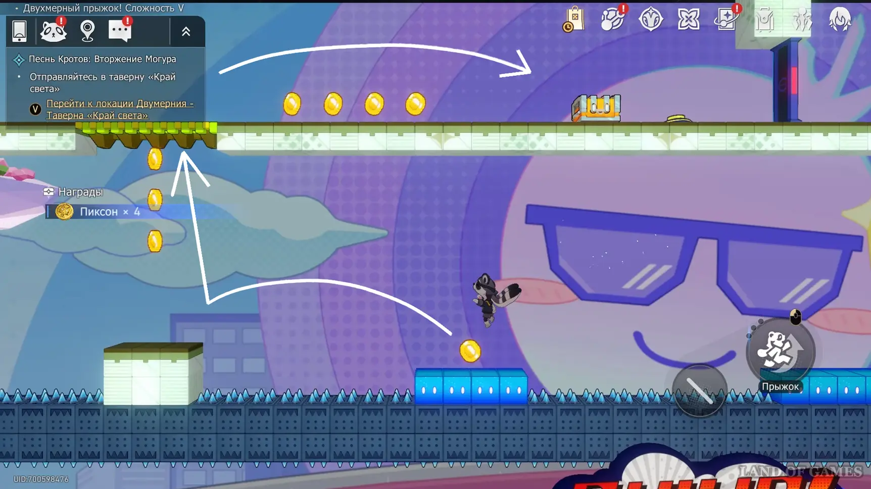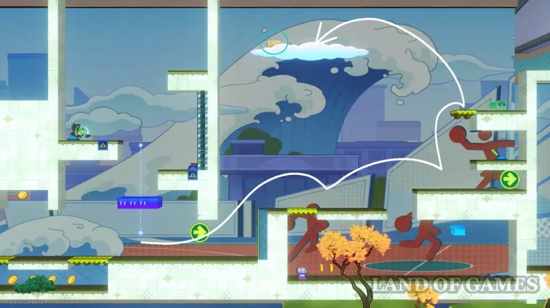 Со старта уровня развернитесь и прыгайте влево — скрытая дорожка выведет к первой сокровищнице.