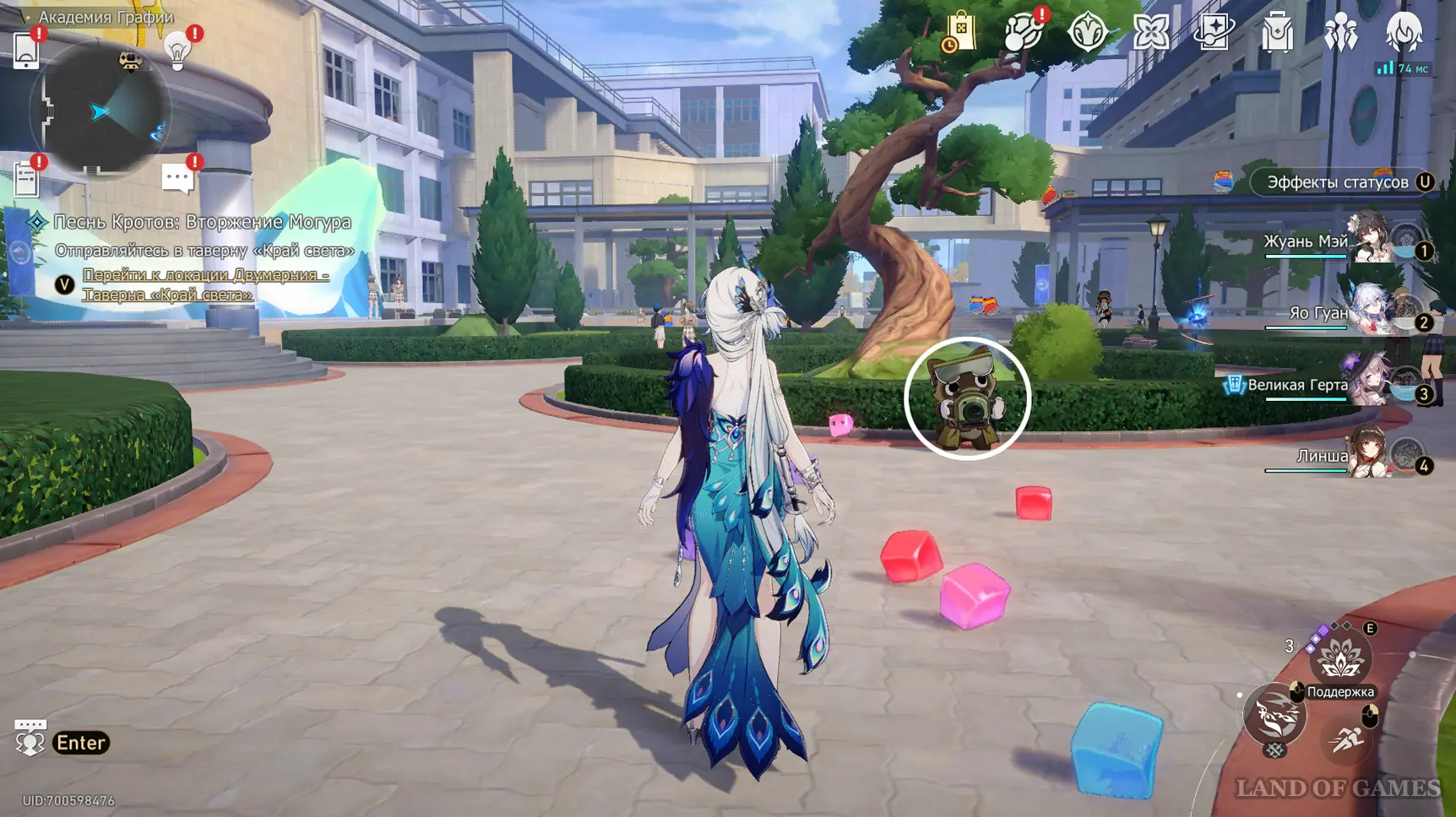 14-й трофей находится у мостика во дворе по центру академии.
